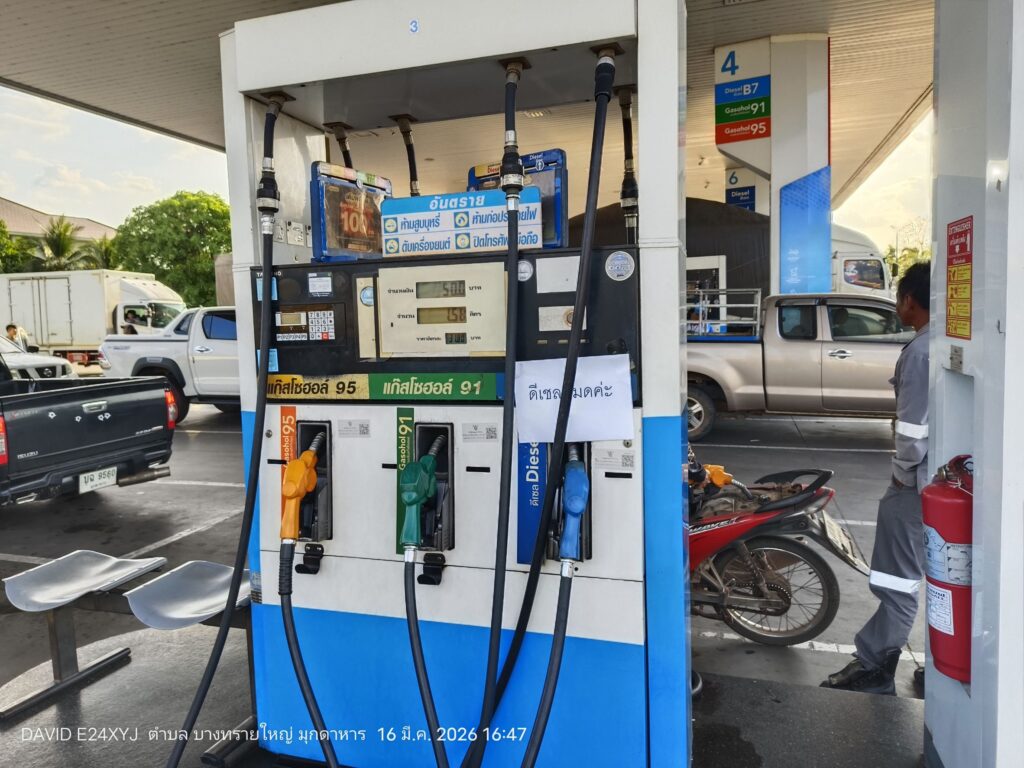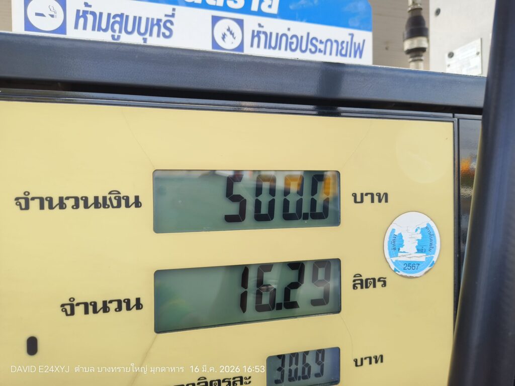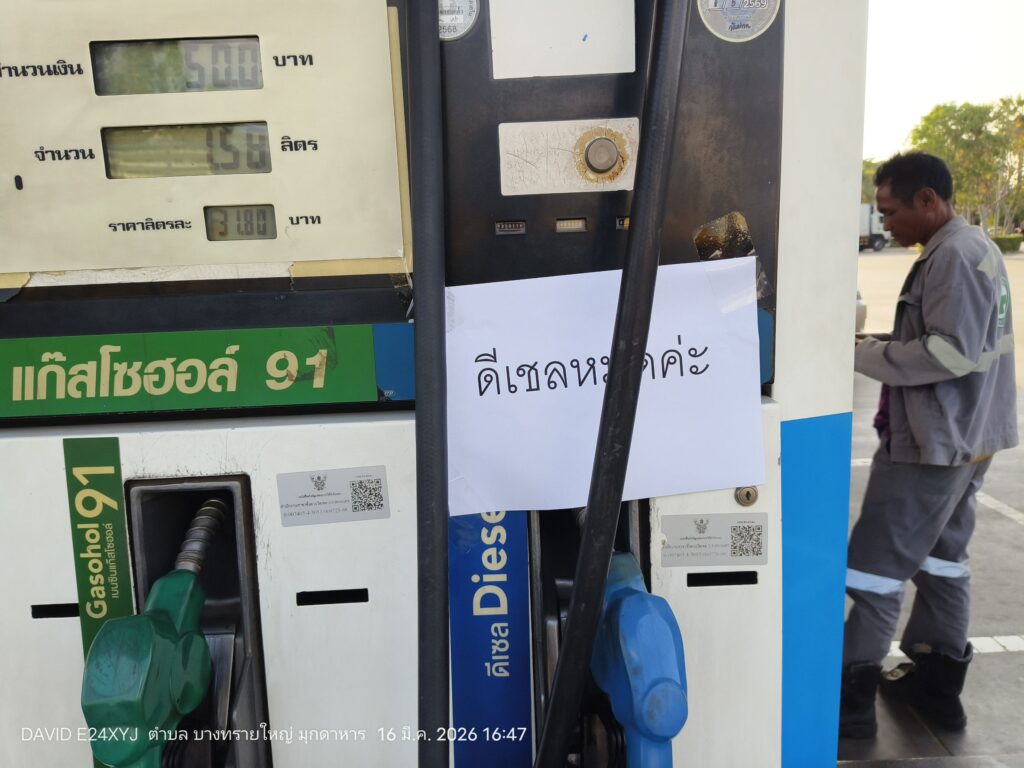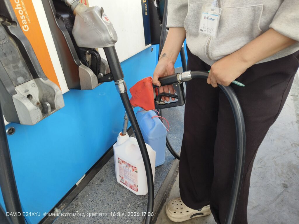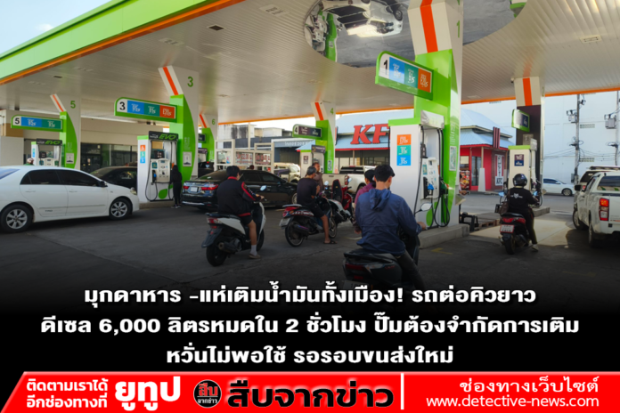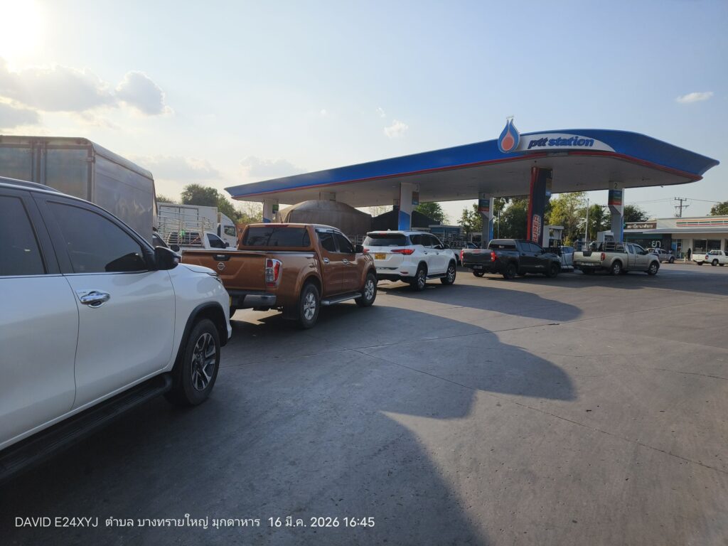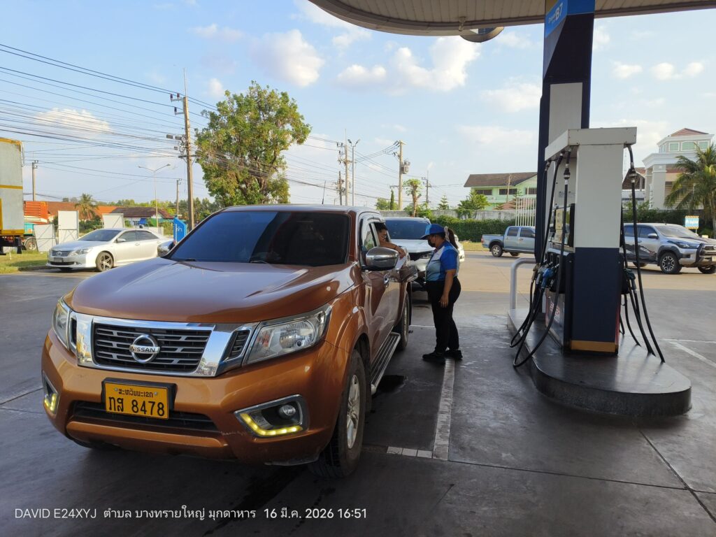 จากการลงพื้นที่ตรวจสอบที่ปั๊มน้ำมัน PT ในเขตอำเภอเมืองมุกดาหาร พบว่าบรรยากาศเป็นไปอย่างคึกคัก มีรถยนต์จำนวนมากต่อคิวรอเข้าเติมน้ำมัน โดยพนักงานปั๊มเปิดเผยว่า ความต้องการใช้น้ำมันเพิ่มสูงขึ้นอย่างผิดปกติ โดยเฉพาะ “น้ำมันดีเซล” ที่ทางปั๊มเพิ่งได้รับการเติมเข้ามาใหม่จำนวน 6,000 ลิตร แต่กลับถูกจำหน่ายหมดภายในเวลาเพียง 2 ชั่วโมงเท่านั้น