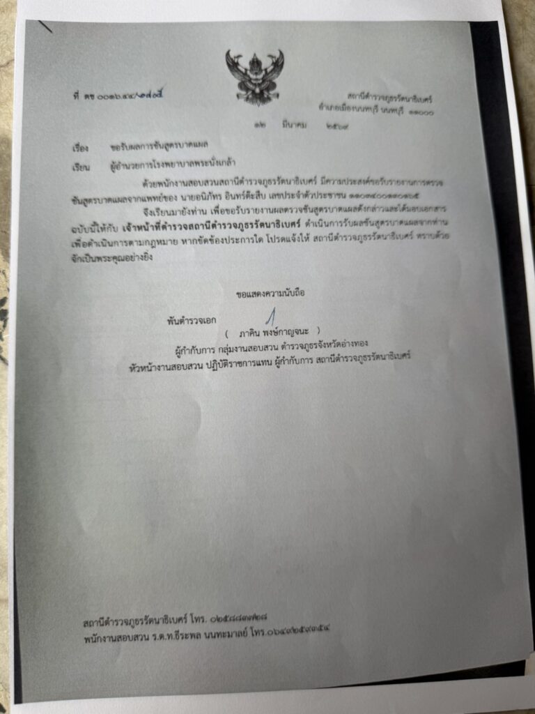 หลังเข้าพบ พนักงานสอบสวน กก.2 บก.ป.ได้โทรไปประสานพนักงานสอบสวนสภ. รัตนาธิเบศร์ให้ดำเนินการเร่งรัดคดีให้ความยุติธรรมกับผู้เสียหายต่อไป