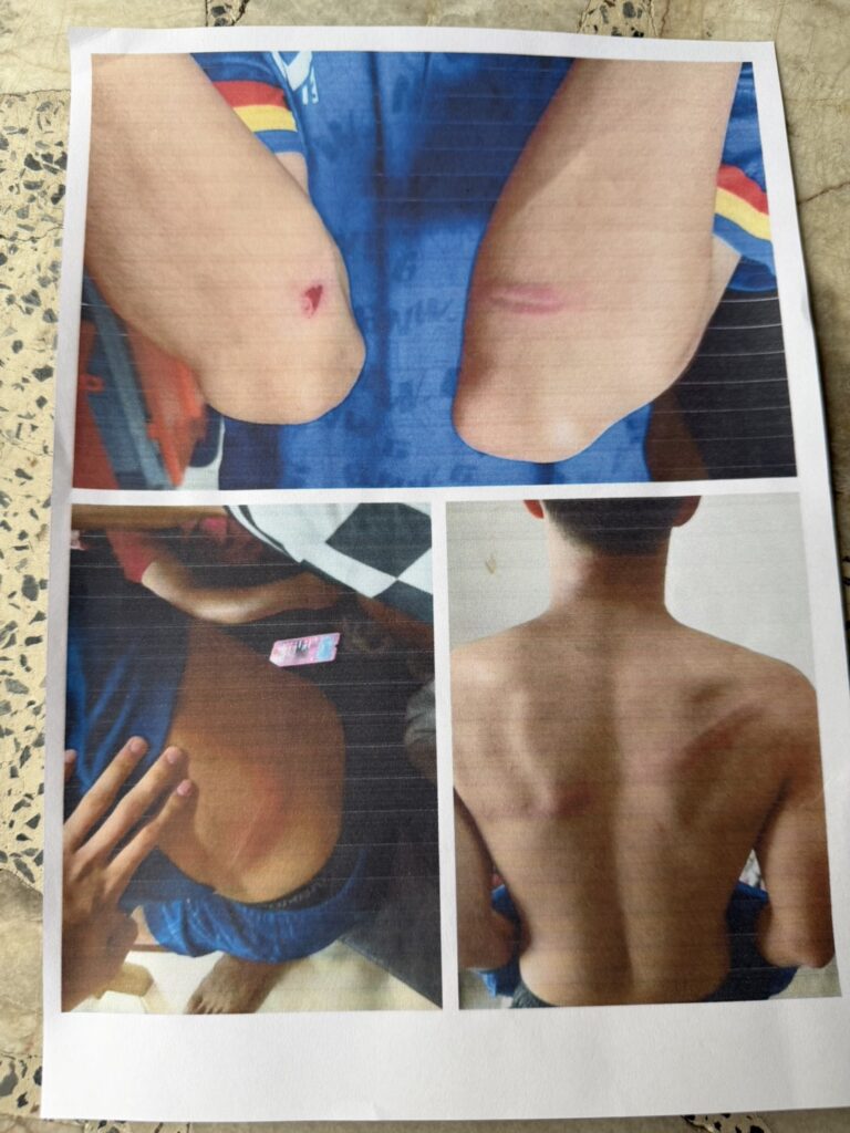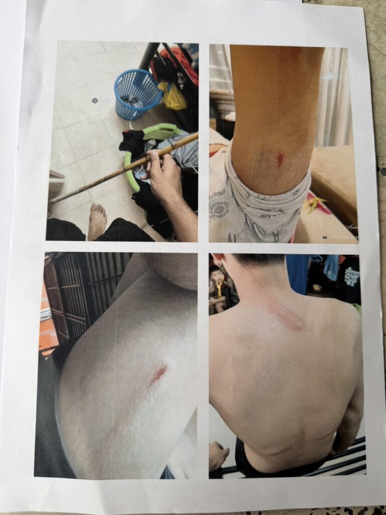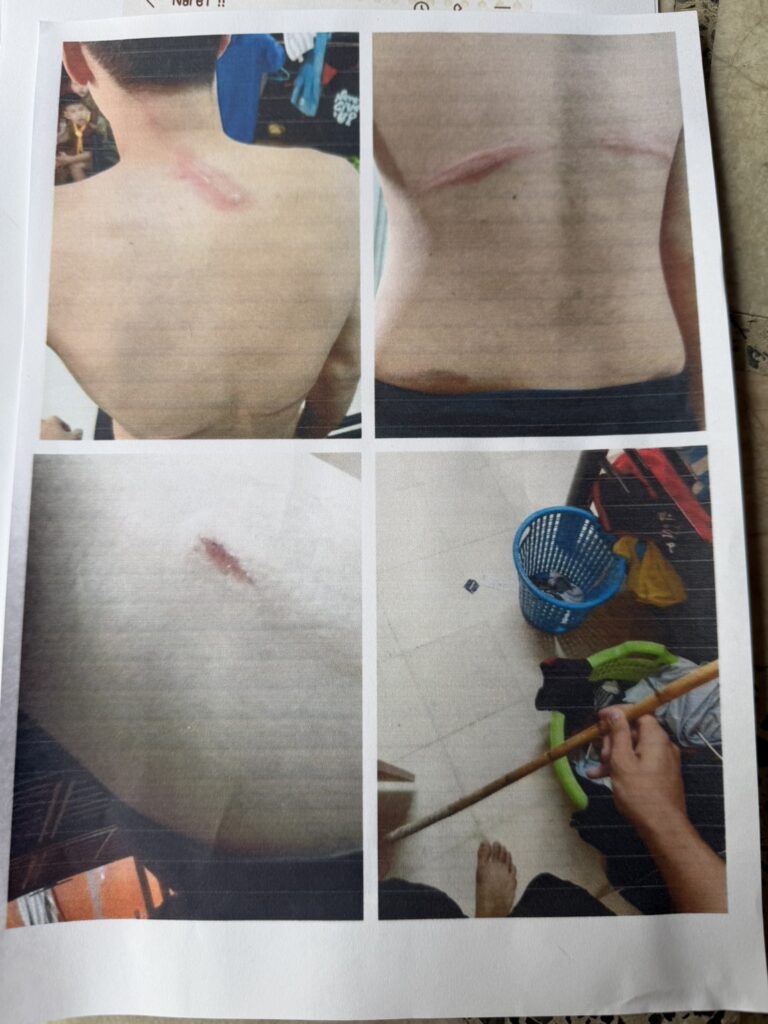 ขณะที่น้องแม็ก อายุ 18 ปี ผู้เสียหาย ยืนยันว่า วันที่ผู้ช่วยโค้ชใช้ไม้ตีอย่างรุนแรง เป็นวันที่เขาประกาศให้เด็ก ม.6 ลงไปเขียนเอกสารจบการศึกษา แต่พวกเราต่างไม่ได้ยิน ผู้ช่วยโค้ชเลยเดินขึ้นมาตามแล้วถลกผ้าห่มขึ้น ก่อนใช้ไม้ตีจนเนื้อแตกกว่า 20 ครั้ง จนเนื้อปูด เป็นแผล มีรูปเป็นหลักฐาน