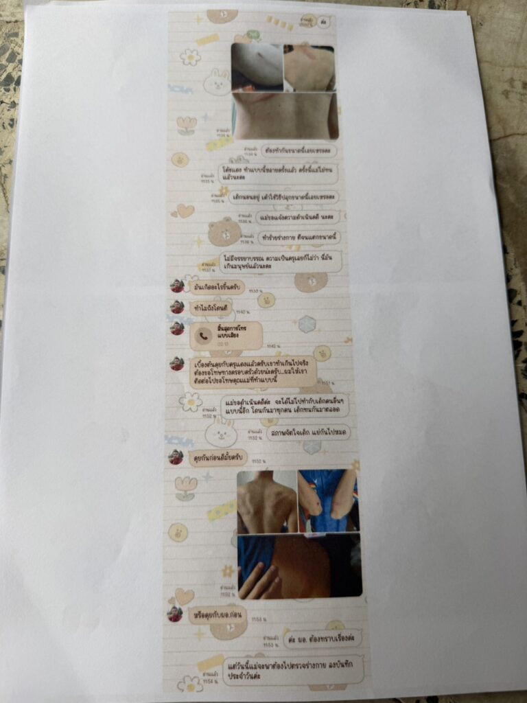 ส่วนตัวก็ยังไม่ได้ไปคุยกับผู้ปกครองเด็กคนอื่น แต่อยากฝากถึงผู้ปกครองคนอื่นๆ หากพบว่าลูกถูกกระทำในลักษณะเดียวกัน ก็อยากให้ออกมาดำเนินการ เพราะในอนาคตถ้าจะต้องใช้ความรุนแรงในการสอนแบบนี้อีก มันจะเกิดเรื่องไม่ดีเกิดขึ้น ไม่อยากให้เกิดความสูญเสีย เพราะมันย้อนกลับไม่ได้