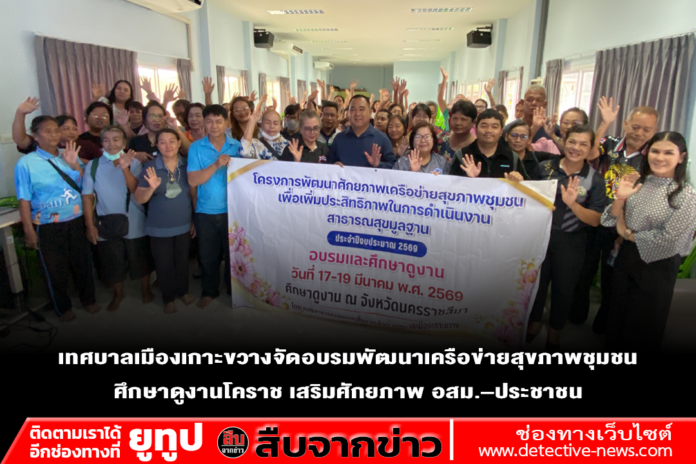 วันที่ 17 มีนาคม 2569 กองสาธารณสุขและสิ่งแวดล้อม เทศบาลเมืองเกาะขวาง จัดโครงการพัฒนาศักยภาพเครือข่ายสุขภาพชุมชน เพื่อเพิ่มประสิทธิภาพในการดำเนินงานสาธารณสุขมูลฐาน ประจำปีงบประมาณ พ.ศ. 2569 พร้อมนำคณะผู้เข้าร่วมอบรมศึกษาดูงาน ระหว่างวันที่ 17–19 มีนาคม พ.ศ. 2569 ณ จังหวัดนครราชสีมา