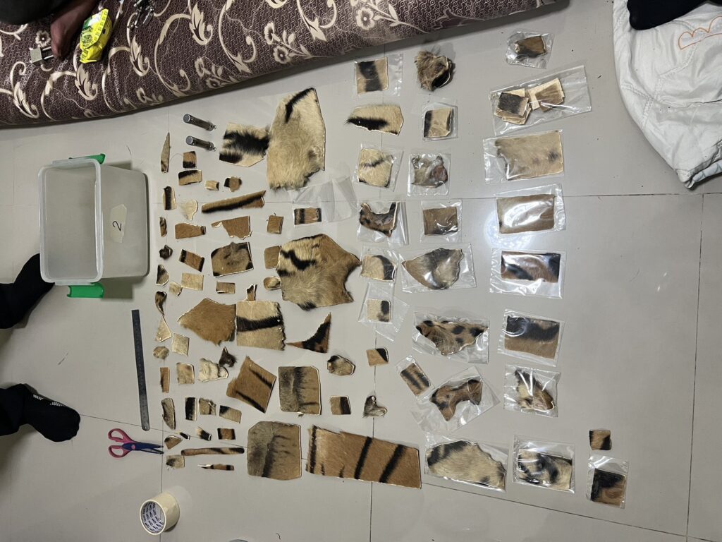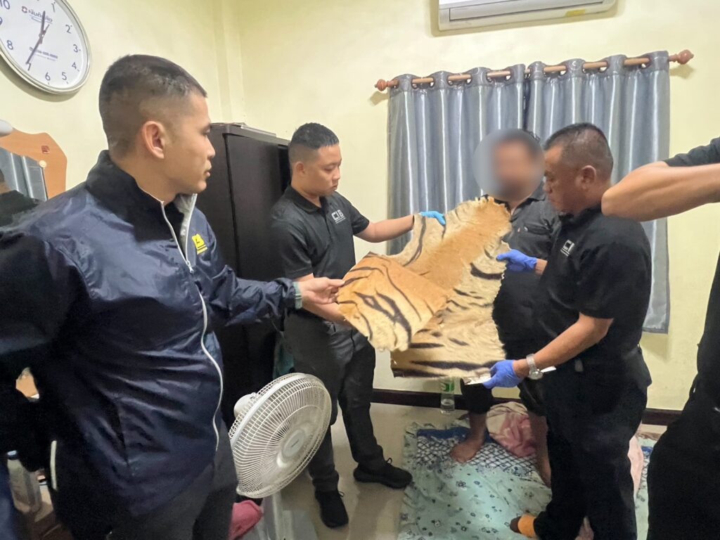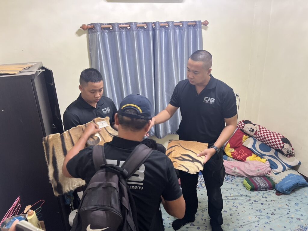 ต่อมาเจ้าหน้าที่ตำรวจชุดสืบสวนได้นำกำลังเข้าจับกุมบุคคลทั้งสองได้ที่บ้านหลังดังกล่าว และทำการตรวจค้นพบเครื่องรางที่ทำจากตะกรุดหนังเสือ และแผ่นหนังเสือ จึงทำการตรวจยึด และแจ้งข้อกล่าวหาตามข้างต้นให้บุคคลทั้งสองทราบ และควบคุมตัวนำส่ง พนักงานสอบสวน กองกำกับการ 1 บก.ปทส. ดำเนินคดีในข้อหา“ร่วมกันค้าและมีไว้ในครอบครองซึ่งซากสัตว์ป่าคุ้มครองโดยไม่ได้รับอนุญาต” ซึ่ง ตาม พ.ร.บ.สงวนและคุ้มครองสัตว์ป่า พ.ศ.2562 ประกอบกับกฎกระทรวง เรื่อง กำหนดให้สัตว์ป่าคุ้มครองจำพวกสัตว์ป่าคุ้มครอง พ.ศ.2567 เสือโคร่งเป็นสัตว์เลี้ยงลูกด้วยนม ที่ได้รับการคุ้มครองตามกฎหมายอยู่ในลำดับที่ 158 ผู้ใดค้าหรือครอบครองซากเสือโคร่งโดยผิดกฎหมายมีโทษจำคุกไม่เกินสิบปี หรือปรับไม่เกินหนึ่งล้านบาทหรือทั้งจำทั้งปรับ