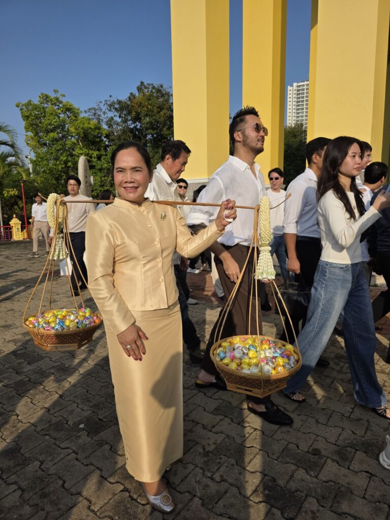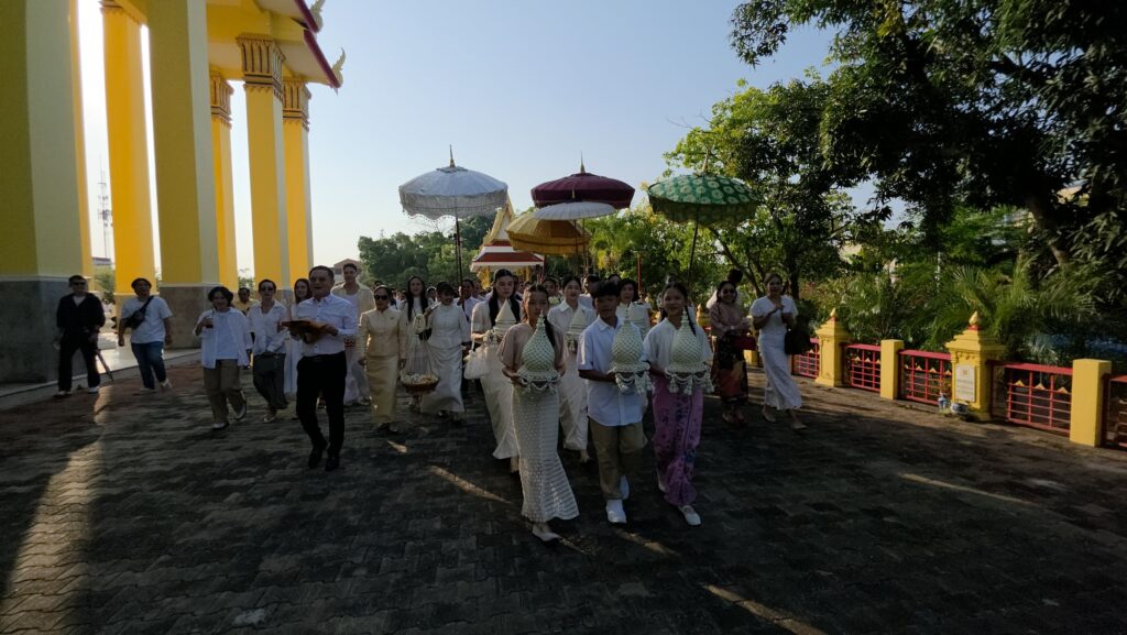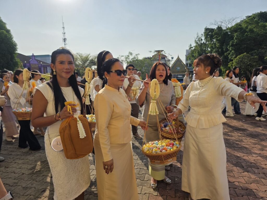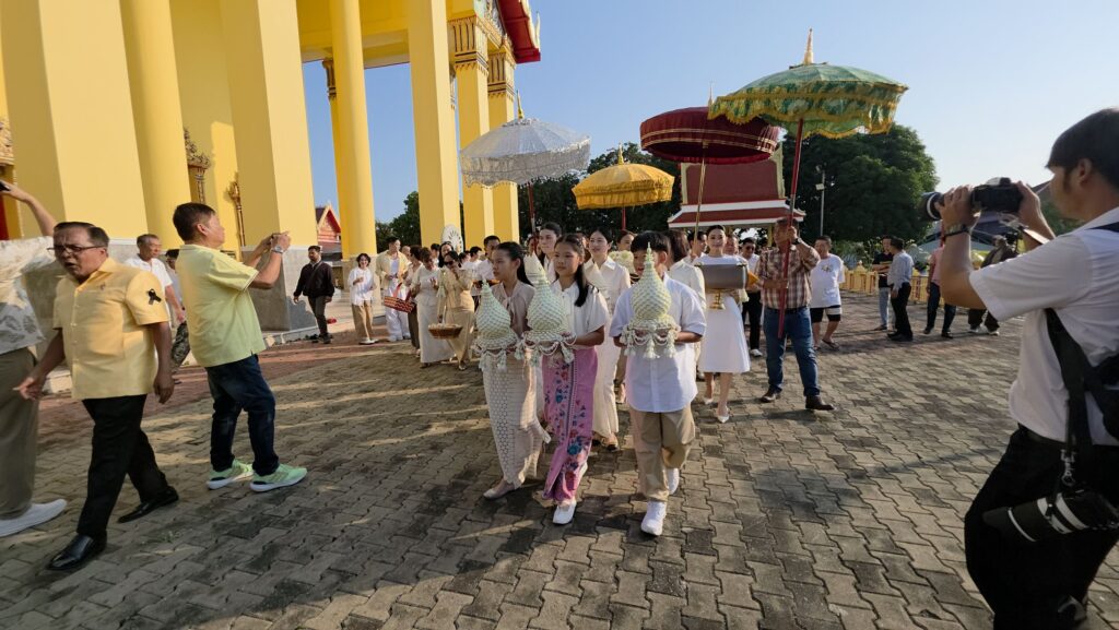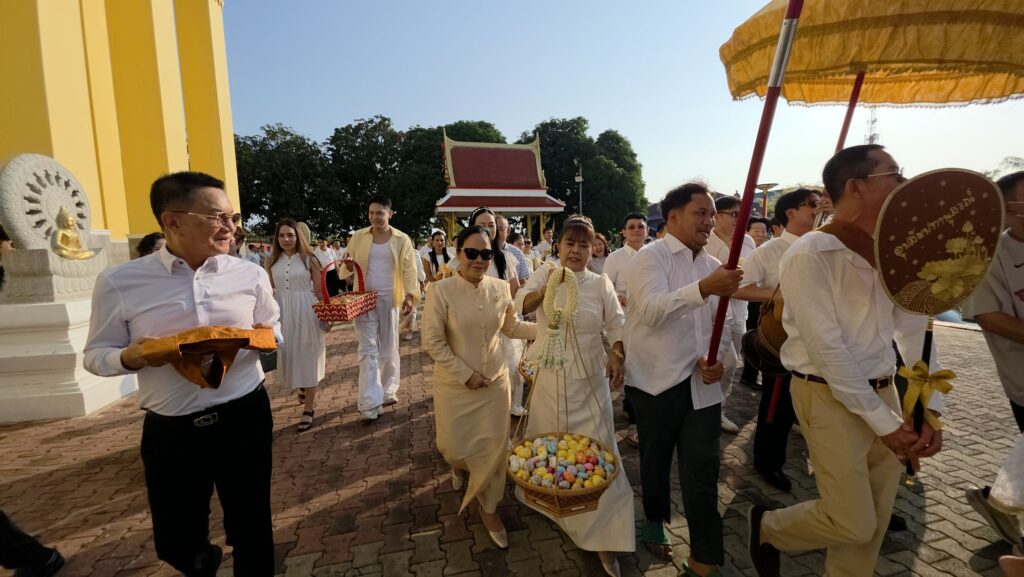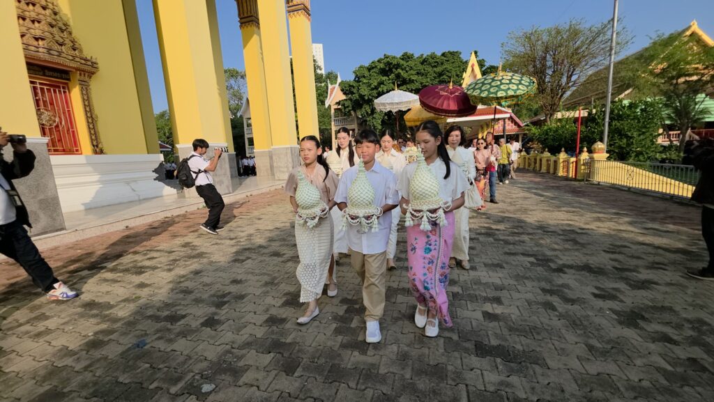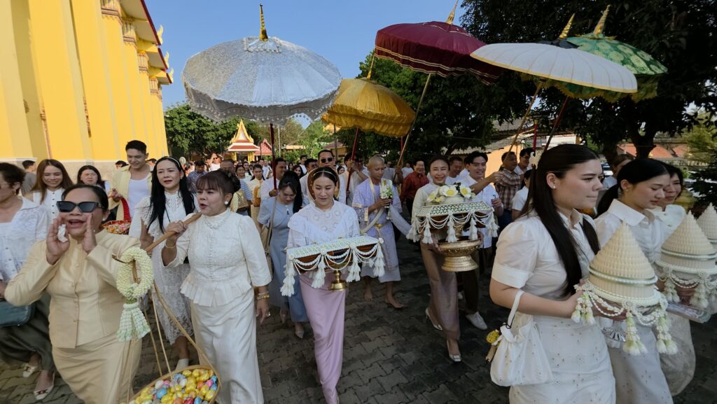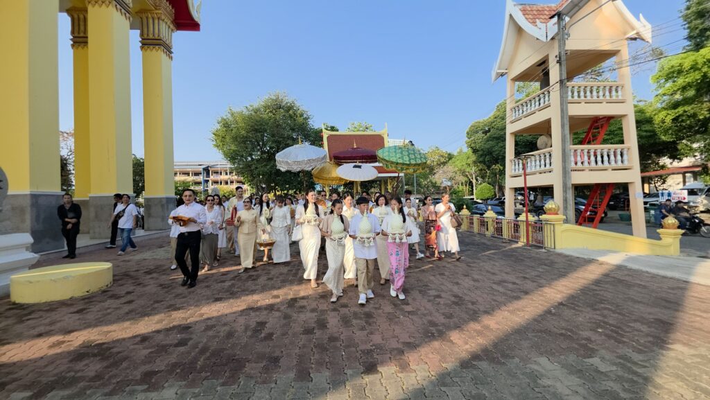 ทั้งนี้ก่อนนำนาคเข้าอุโบสถ ตามประเพณีนาคจะเดินเวียนประทักษิณ (เวียนขวา) รอบโบสถ์ เป็นการรำลึกว่า การอุปสมบทที่จะเกิดขึ้นเป็นไปด้วยความสุจริต ถูกต้องทั้งกาย วาจา ใจ โดยทางครอบครัวได้จัดพิธีแห่นาค รอบอุโบสถพร้อมทั้งนำเงินมาโปรยทาน