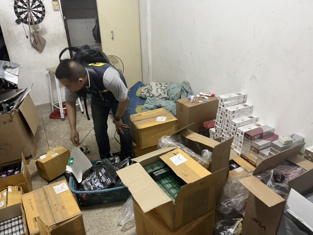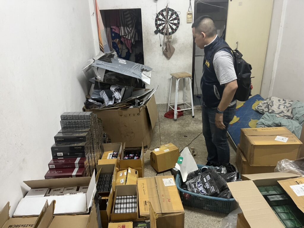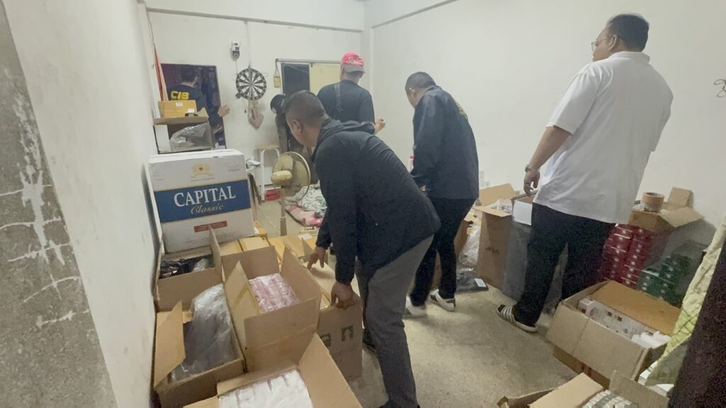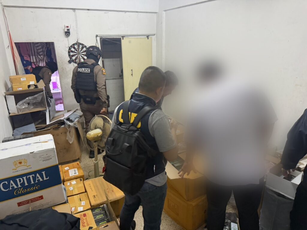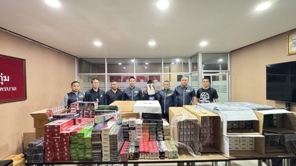 ผลการตรวจสอบภายในห้องพัก พบของกลางรวม 19 รายการ ประกอบด้วยบุหรี่ต่างประเทศหลากหลายยี่ห้อ รวมทั้งสิ้น 12,702 ซอง คิดเป็นมูลค่าประมาณ 500,000 บาท