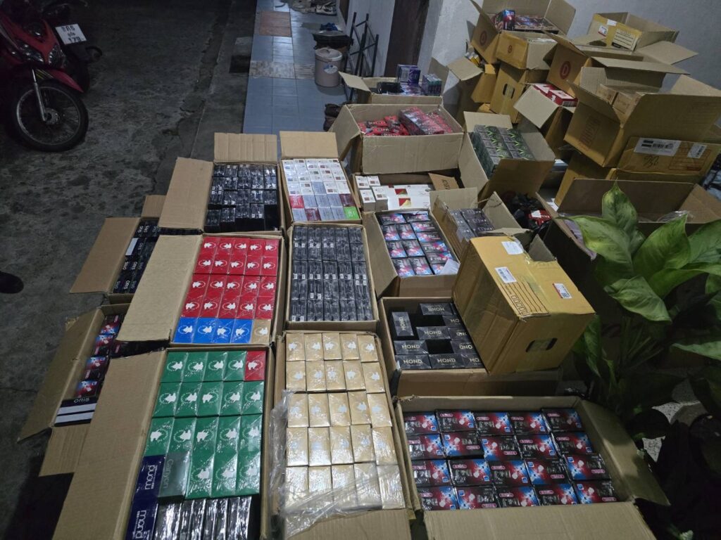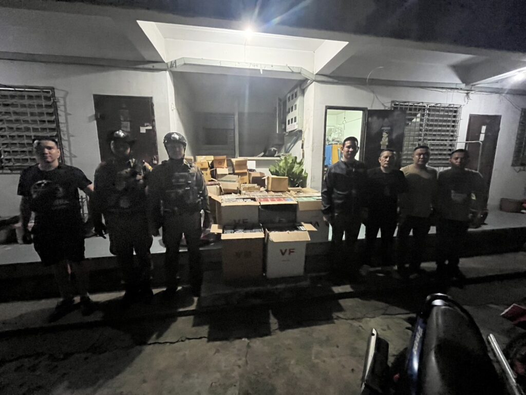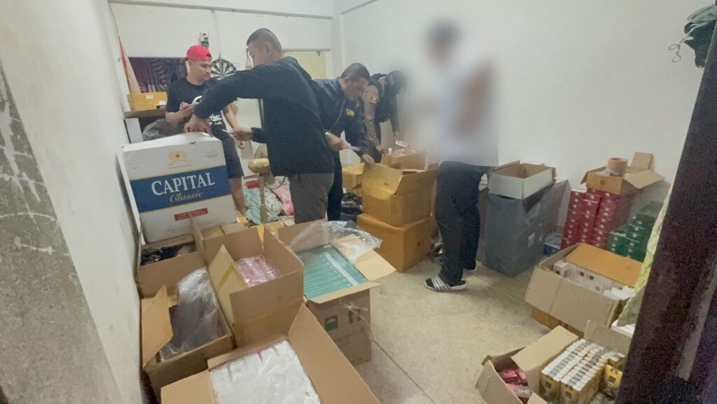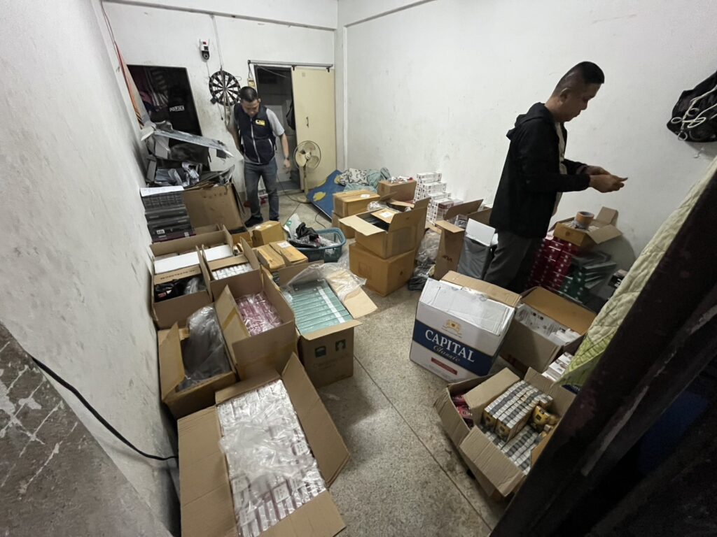 ผลการตรวจสอบภายในห้องพัก พบของกลางรวม 19 รายการ ประกอบด้วยบุหรี่ต่างประเทศหลากหลายยี่ห้อ รวมทั้งสิ้น 12,702 ซอง คิดเป็นมูลค่าประมาณ 500,000 บาท