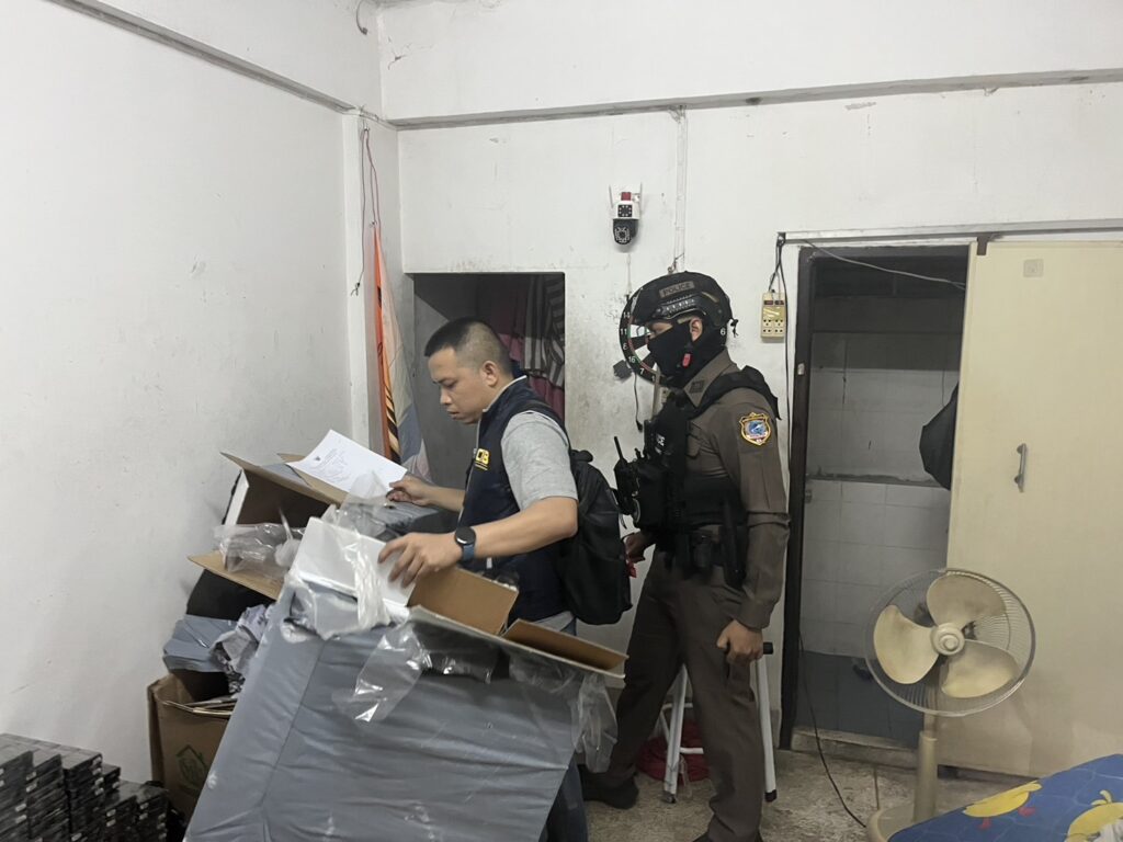 จากการสอบสวนเบื้องต้น ผู้ต้องหาให้การรับสารภาพว่ารับสินค้ามาจาก นายณัฐภัทร หรือแม็ค โดยใช้ห้องเช่าภายในซอยเสรีไทย 41 เป็นสถานที่เก็บสินค้า เจ้าหน้าที่จึงประสานกำลังร่วมกับ สน.บึงกุ่ม เข้าตรวจสอบห้องพักดังกล่าว พบว่าถูกปิดล็อคไว้และไม่สามารถติดต่อผู้เช่าได้ จึงขออนุญาตเจ้าของหอพักเข้าตรวจค้น