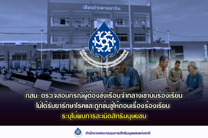 3. กสม. ตรวจสอบกรณีผู้ต้องขังเรือนจำกลางเขาบินร้องเรียนว่าไม่ได้รับยารักษาโรคและถูกข่มขู่ให้ถอนเรื่องร้องเรียน ระบุการดูแลผู้ต้องขังเป็นไปตามมาตรฐาน ไม่พบการละเมิดสิทธิมนุษยชน