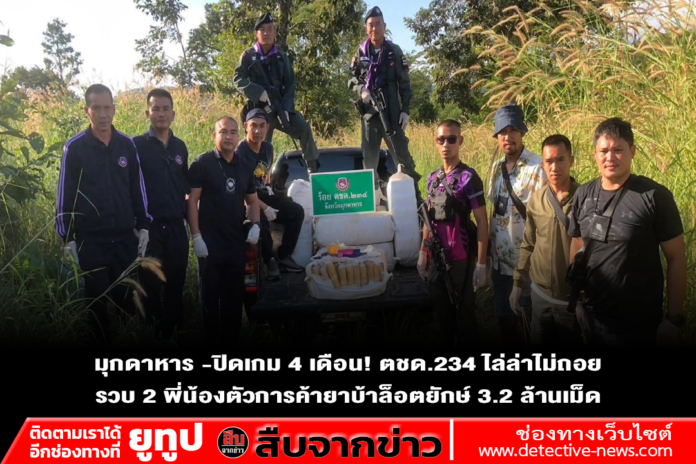 สืบเนื่องจากเมื่อวันที่ 12 พฤศจิกายน 2568 เจ้าหน้าที่ ร้อย ตชด.234 ได้ตรวจยึดยาบ้าจำนวน 3,232,000 เม็ด บริเวณเชิงเขา บ้านตาเปอะ ตำบลบ้านค้อ อำเภอคำชะอี จังหวัดมุกดาหาร แม้ในวันดังกล่าวผู้กระทำผิดจะหลบหนีไปได้ แต่เจ้าหน้าที่ไม่ลดละ เดินหน้าสืบสวนเชิงลึกตามแนวทาง “กัดไม่ปล่อย ล่าไม่ถอย” ทั้งการแกะรอยเครือข่าย การตรวจสอบเส้นทางการเงิน และรวบรวมพยานหลักฐานอย่างรัดกุม