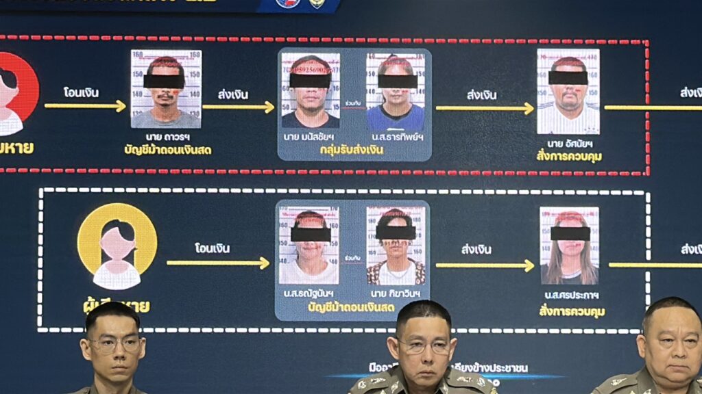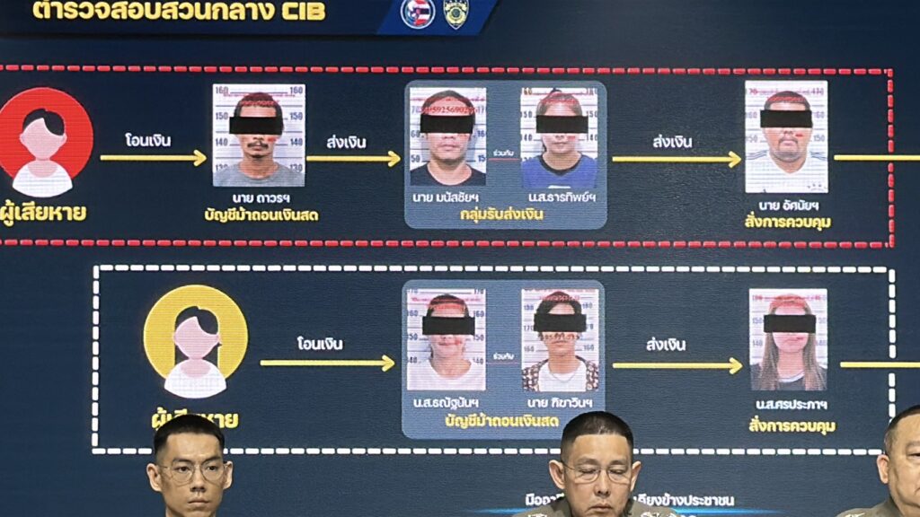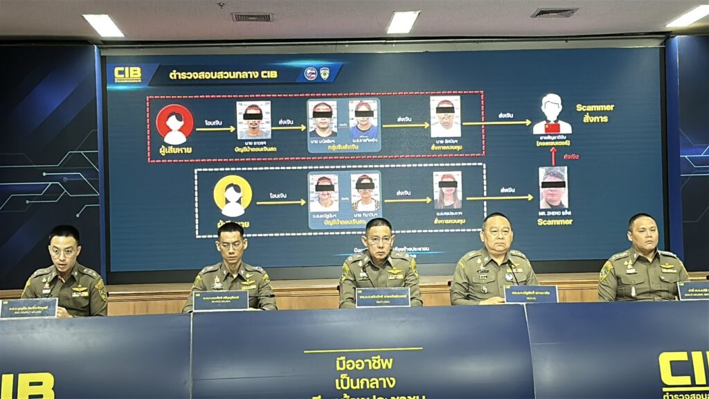 • การเส้นทางการเงิน: เมื่อเหยื่อโอนเงินเข้าบัญชีม้า กลุ่มถอนเงินจะรีบไปกดเงินสดที่ตู้ ATM ในพื้นที่ จ.สมุทรปราการ แล้วนำเงินสดไปส่งต่อให้ นายอัสนัยฯ (หัวหน้าคนไทย) ซึ่งจะรวบรวมเงินไปส่งให้ MR. ZHENG (ทุนจีน) อีกทอดหนึ่ง