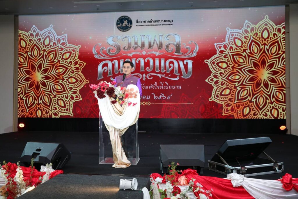 (19 มี.ค.69) ที่โรงแรมแกรนด์ พาลาสโซ่ พัทยา ซ.เพ็ชรตระกูล ต.หนองปรือ อ.บางละมุง จ.ชลบุรี นายอนุศักดิ์ พิริยอมร นายอำเภอบางละมุง ในฐานะ นายกกิ่งกาชาดอำเภอบางละมุง เป็นประธานเปิดงานกิจกรรมพบปะสังสรรค์ “รวมพลคนขาวแดง จิตอาสาพาไปด้วยหัวใจที่เบิกบาน” ท่ามกลางแขกผู้มีเกียรติเข้าร่วม อาทิ นายดำรงค์เกียรติ พินิจการ รองนายกเมืองพัทยา, พ.ต.อ.เอนก สระทองอยู่ ผกก.สภ.เมืองพัทยา, นายยศพงษ์ ลินทอง นายกเทศมนตรีเทศบาลตำบลหนองปลาไหล, นางวิลาวรรณ เฮงตระกูล รองนายกกิ่งกาชาดอำเภอบางละมุง ร่วมด้วยคณะกรรมการกิ่งกาชาด หัวหน้าส่วนราชการ ภาคเอกชน และประชาชนเข้าร่วมงานอย่างคับคั่ง