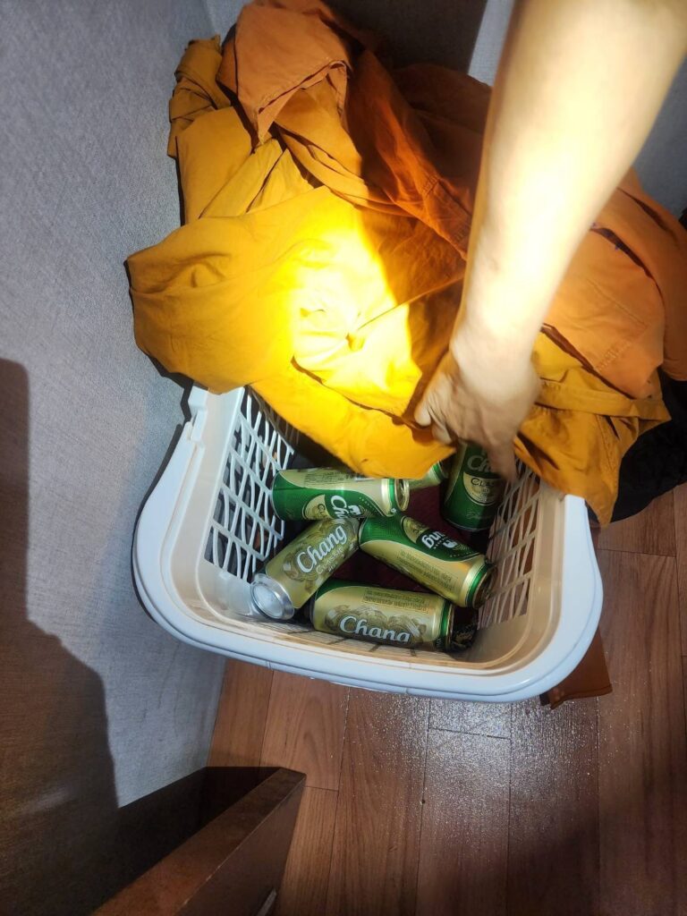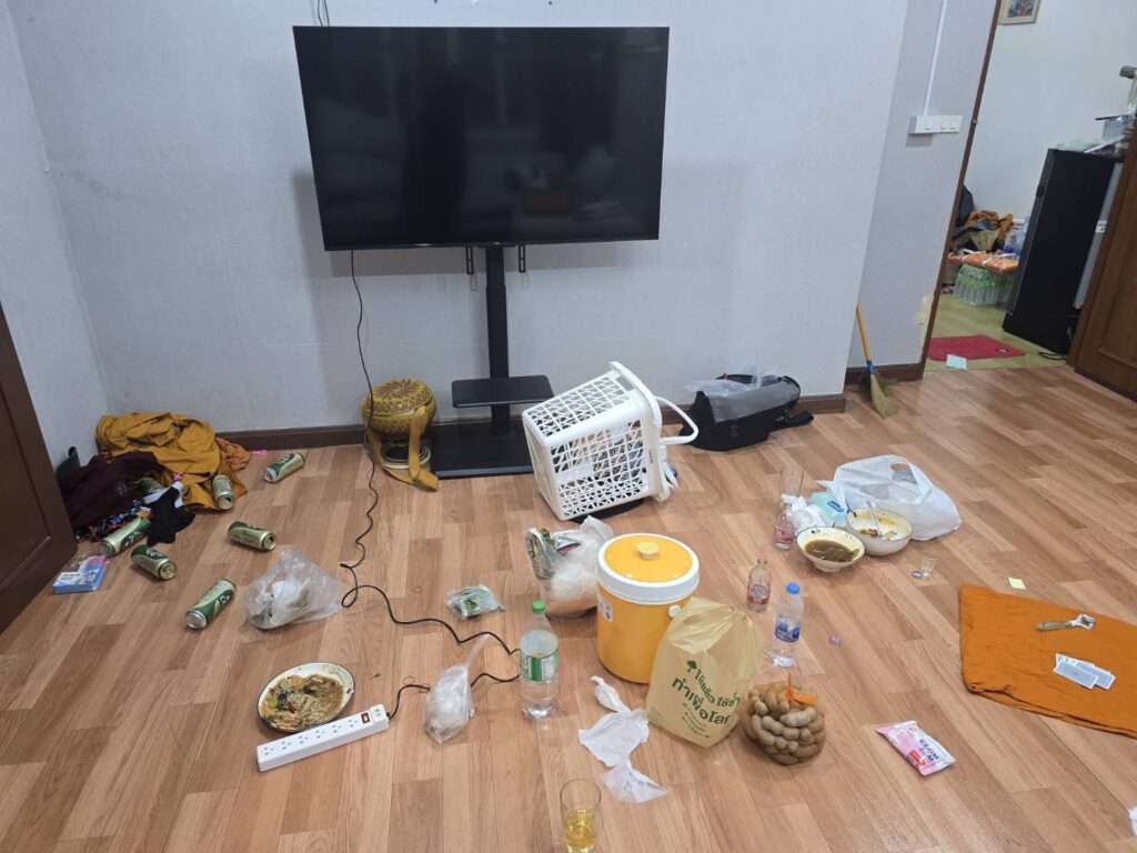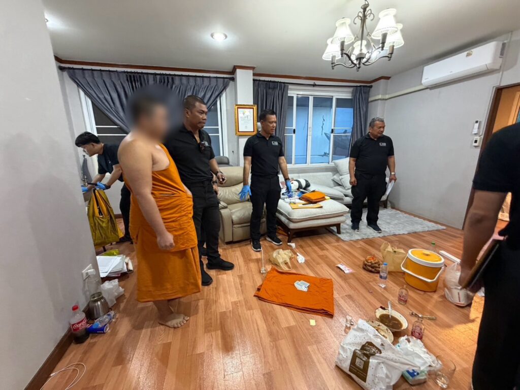 ต่อมา เจ้าหน้าที่ตำรวจ กก.1 บก.ปคม. ได้รวบรวมพยานหลักฐานและขออนุมัติศาลออกหมายจับผู้กระทำความผิด ก่อนจะนำกำลังเข้าปูพรมตรวจค้นกุฏิภายในวัด จนนำไปสู่การจับกุมพระผู้ต้องหา จำนวน 2 รูป โดยจากการตรวจค้นกุฏิพบสิ่งของจำนวนมากที่เกี่ยวข้องกับพฤติกรรมดังกล่าว อาทิ อุปกรณ์เล่นการพนัน ถุงยางอนามัย เจลหล่อลื่น และเครื่องดื่มแอลกอฮอล์ที่มีการเก็บไว้ในตู้เย็นเป็นจำนวนมาก รวมถึงตรวจยึดโทรศัพท์มือถือ จำนวน 3 เครื่อง และอุปกรณ์อิเล็กทรอนิกส์อีก 3 เครื่อง ซึ่งภายในพบข้อมูลภาพและคลิปวิดีโอของสามเณรในลักษณะอนาจารมากกว่า 100 คลิป
