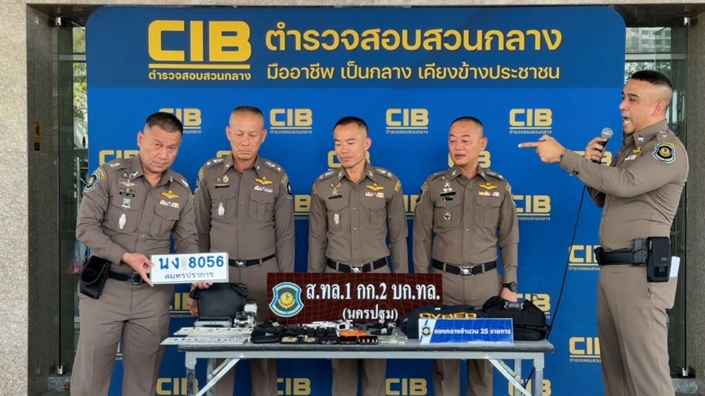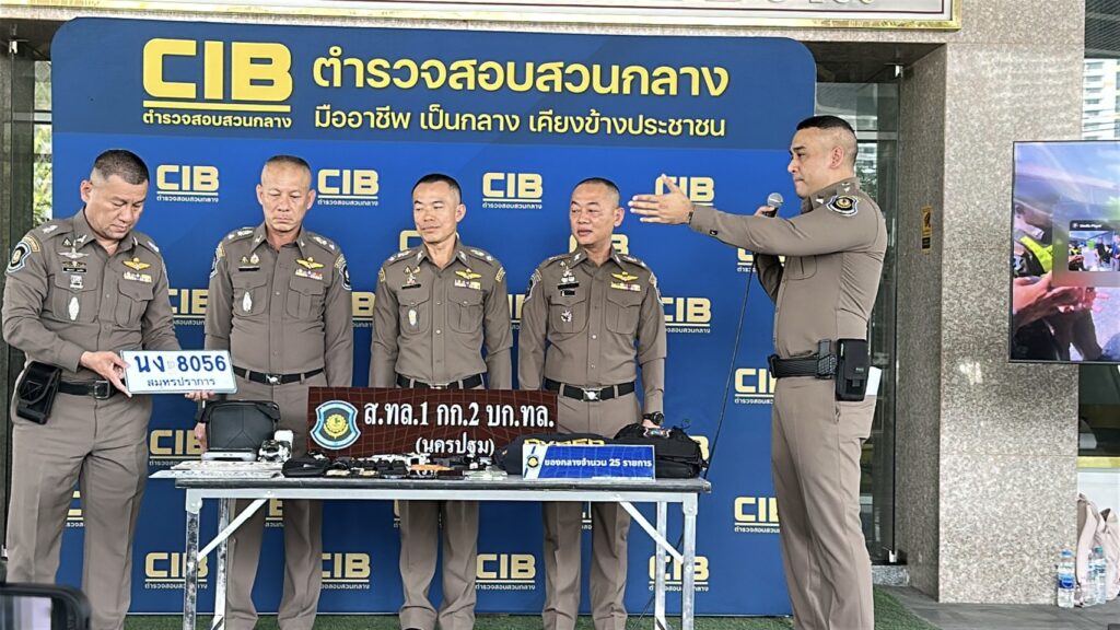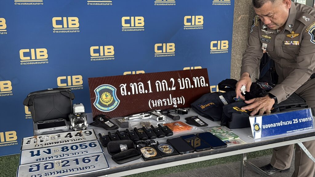 กองบัญชาการตำรวจสอบสวนกลาง (CIB) โดยกองบังคับการตำรวจทางหลวง แถลงผลการจับกุมขบวนการแอบอ้างเป็นเจ้าหน้าที่รัฐ หลังรับแจ้งเหตุอุกฉกรรจ์ชักอาวุธปืนข่มขู่ประชาชนบนถนนสาธารณะ ตรวจสอบพบอุปกรณ์สอดแนมและชุดเครื่องแบบครบชุด มุ่งเป้าตบทรัพย์ผู้ประกอบการ
