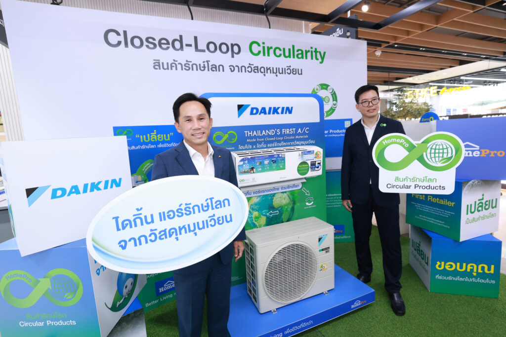 นายอาเทพ พันธุ์อุทัยวัฒน์ ผู้ช่วยกรรมการผู้จัดการ บริษัท โฮม โปรดักส์ เซ็นเตอร์ จำกัด (มหาชน) หรือ “โฮมโปร” กล่าวว่า โฮมโปรมุ่งมั่นจะเป็นกลไกในการช่วยให้ผู้บริโภคเข้าถึงการอยู่อาศัยที่ยั่งยืนได้ง่ายขึ้น ผ่านบทบาทการพัฒนา Closed Loop Circular Product ที่ดำเนินการภายใต้โครงการ “แลกเก่าเพื่อโลกใหม่” โดยนำสินค้าเครื่องใช้ไฟฟ้าเก่าและวัสดุใช้แล้วจากแหล่งต่าง ๆ มาผ่านกระบวนการคัดแยกและผลิตเป็นเม็ดพลาสติก PCR (Post-Consumer Recycled Plastic) เพื่อนำไปสู่กระบวนการผลิตเป็นสินค้าใหม่อีกครั้ง ส่งผลให้ไดกิ้นกลายเป็นแอร์แบรนด์แรกในประเทศไทยที่นำเม็ดพลาสติก PCR มาใช้เป็นส่วนผสมในผลิตภัณฑ์ ช่วยสร้างระบบเศรษฐกิจหมุนเวียนให้เกิดขึ้นอย่างครบวงจร และพิสูจน์ให้เห็นว่าการดำเนินธุรกิจสามารถเดินหน้าไปพร้อมกับการดูแลสิ่งแวดล้อมได้อย่างเป็นรูปธรรม