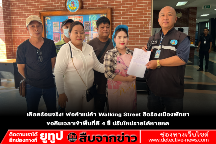 นายศกร ตั้งใจ และ น.ส.นิซนีน่า คุดลูตุ๊ด ตัวแทนพ่อค้าแม่ค้า Walking Street เปิดเผยว่า การรวมตัวเข้ายื่นหนังสือในครั้งนี้ เกิดจากความเดือดร้อนของผู้ค้าหลังมีการปรับเปลี่ยนเวลาเข้าพื้นที่จำหน่ายสินค้า จากเดิมสามารถนำสินค้าเข้าพื้นที่ได้ตั้งแต่เวลา 04.00 น. แต่ปัจจุบันเมืองพัทยาปรับเวลาใหม่เป็นช่วง 05.00 – 05.30 น. ซึ่งมองว่าเป็นเวลาที่สายเกินไป เนื่องจากในช่วงเวลาดังกล่าวแทบไม่มีลูกค้า และนักท่องเที่ยวแล้ว ส่งผลกระทบโดยตรงต่อรายได้ของพ่อค้าแม่ค้า โดยเฉพาะกลุ่มผู้ค้าประเภทอาหารสด ที่เมื่อขายไม่หมดจะเกิดความเสียหาย เน่าเสีย ไม่สามารถนำกลับมาจำหน่ายได้อีก ทำให้ขาดทุนอย่างต่อเนื่อง