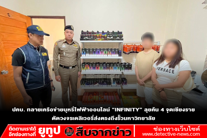 จากการสืบสวนพบว่า ผู้ต้องหาเปิดร้านค้าออนไลน์ผ่านแอปพลิเคชัน Line ในชื่อ “INFINITY” ลักลอบขายบุหรี่ไฟฟ้าและน้ำยาบุหรี่ไฟฟ้า โดยมีการวางแผนอย่างแยบยลเพื่อเลี่ยงการตรวจสอบ ดังนี้