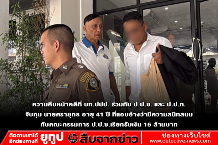 ความคืบหน้าคดีที่ บก.ปปป. ร่วมกับ ป.ป.ช. และ ป.ป.ท. จับกุม นายศรายุทธ อายุ 41 ปี อาชีพรับเหมาก่อสร้าง ที่แอบอ้างว่ามีความสนิทสนมกับคณะกรรมการ ป.ป.ช. เรียกรับเงิน 15 ล้านบาท เพื่อช่วยเหลือทางคดีให้แก่รองอธิบดีกรมฝนหลวงและการบินเกษตร