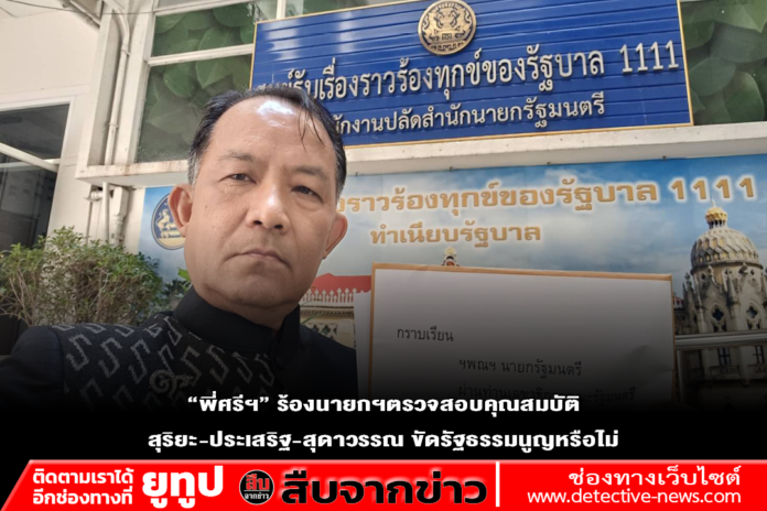 เวลา 10.00 น.วันที่ 26 มี.ค.69 ที่ทำเนียบรัฐบาล นายศรีสุวรรณ จรรยา ผ็นำองค์กรรักชาติ รักแผ่นดิน ได้เดินทางมายื่นคำร้องถึงนายกรัฐมนตรีผ่านเลขาธิการคณะรัฐมนตรี เพื่อขอให้ตรวจสอบคุณสมบัตินายสุริยะ จึงรุ่งเรืองกิจ นายประเสริญ จันทรรวงทอง และ น.ส.สุดาวรรณ หวังศุภกิจโกศล ซึ่งเป็นบุคคลที่พรรคเพื่อไทยเสนอให้พิจารณาเป็นรัฐมนตรีนั้น มีคุณสมบัติหรือลักษณะต้องห้ามตามรัฐธรรมนูญ 2560 มาตรา 160 (4) (5) อันกี่ยวกับการมีความซื่อสัตย์สุจริตเป็นที่ประจักษ์และมีพฤติการณ์ขัดจริยธรรม หรือไม่