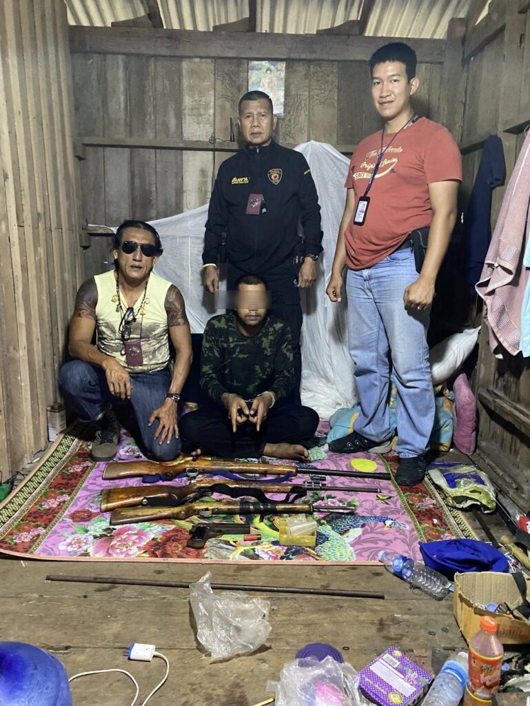 ผลการปฏิบัติ เจ้าหน้าที่สามารถจับกุมผู้ต้องหาได้ 1 ราย คือ นายสหรัฐ กรูพิมาย ในข้อหา “มีอาวุธปืนและเครื่องกระสุนปืนไว้ในครอบครองโดยไม่ได้รับอนุญาต” พร้อมตรวจยึดของกลางจำนวนหลายรายการ ประกอบด้วย อาวุธปืนรวม 4 กระบอก ได้แก่ อาวุธปืนลูกซองยาวขนาดเบอร์ 12 จำนวน 1 กระบอก อาวุธปืนยาวขนาด .22 จำนวน 2 กระบอก และอาวุธปืนลูกซองสั้นไทยประดิษฐ์ขนาดเบอร์ 16 จำนวน 1 กระบอก พร้อมเครื่องกระสุนปืนรวม 27 นัด