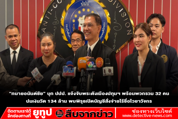 “ทนายอนันต์ชัย” บุก ปปป. แจ้งจับพระดังเมืองปทุมฯ พร้อมพวกรวม 32 คน ปมเงินวัด 134 ล้าน พบพิรุธเปิดบัญชีสั่งจ่ายไร้ชื่อไวยาวัจกร-จี้ “บิ๊กเต่า” ดำเนินการตาม กม.หลังแอบดอดรับทราบข้อกล่าวหา