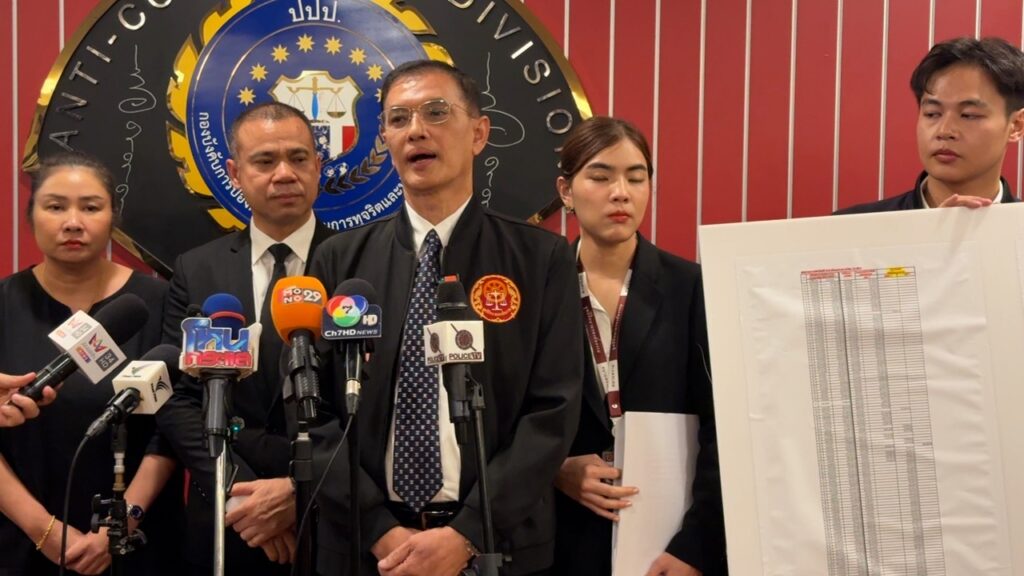 เมื่อเวลา 15.30 น. วันที่ 27 มี.ค. ที่กองบังคับการป้องกันปราบปรามการทุจริตและประพฤติมิชอบ (บก.ปปป.) ชั้น 16 อาคารพิทักษ์สันติ กองบัญชาการตำรวจสอบสวนกลาง ถนนพหลโยธิน นายอนันต์ชัย ไชยเดช ประธานมูลนิธิทนายกองทัพธรรม พร้อมคณะ ได้เดินทางเข้าพบ พล.ต.ต.จรูญเกียรติ ปานแก้ว รอง ผบช.ก. หรือ “บิ๊กเต่า” เพื่อยื่นหนังสือร้องทุกข์กล่าวโทษพระดังเมืองปทุมกับพวก 32 คน ปมเงิน 134 ล้านบาท หลังจากเมื่อวันที่ 25 มี.ค.69 พระดังเมืองปทุม แอบมารับทราบข้อกล่าวหากับตำรวจ ปปป. ที่ บก.ปปป.