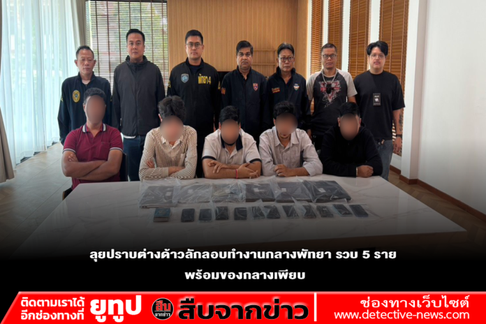 พัทยา – ปฏิบัติการเชิงรุกของเจ้าหน้าที่ตำรวจในพื้นที่เมืองพัทยา ยังคงเดินหน้าสร้างความเชื่อมั่นด้านความปลอดภัยและการท่องเที่ยวอย่างต่อเนื่อง ล่าสุด ศูนย์ปราบปรามคนร้ายข้ามชาติ สภ.เมืองพัทยา เปิดปฏิบัติการเข้าตรวจสอบบ้านพักในพื้นที่ตำบลโป่ง อำเภอบางละมุง จังหวัดชลบุรี ก่อนสามารถจับกุมชาวต่างชาติได้ถึง 5 ราย พร้อมของกลางจำนวนมาก