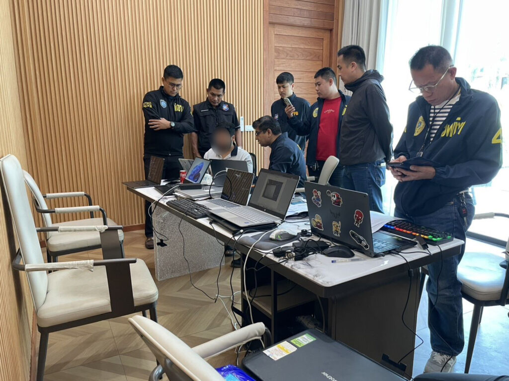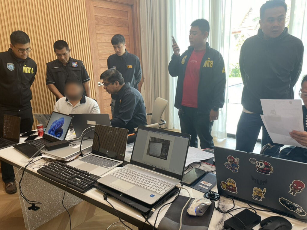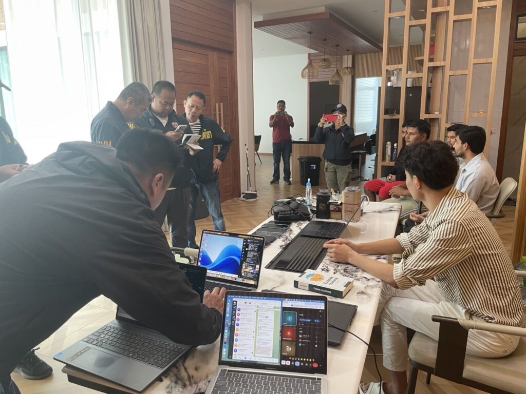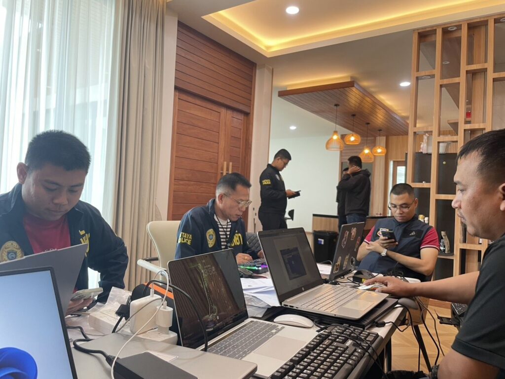 เมื่อถึงเป้าหมาย บ้านพักหมู่ 9 ตำบลโป่ง เจ้าหน้าที่ได้แสดงตัวและเข้าตรวจค้น พบกลุ่มชาวต่างชาติกำลังใช้อุปกรณ์คอมพิวเตอร์และโทรศัพท์จำนวนมากในลักษณะเข้าข่ายทำงาน จึงได้ทำการควบคุมตัวไว้ตรวจสอบ