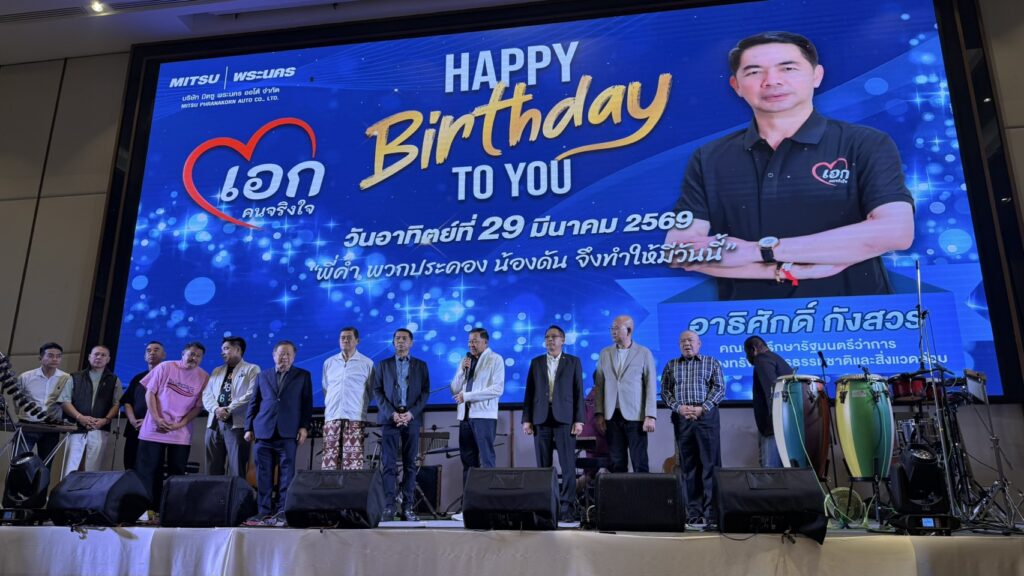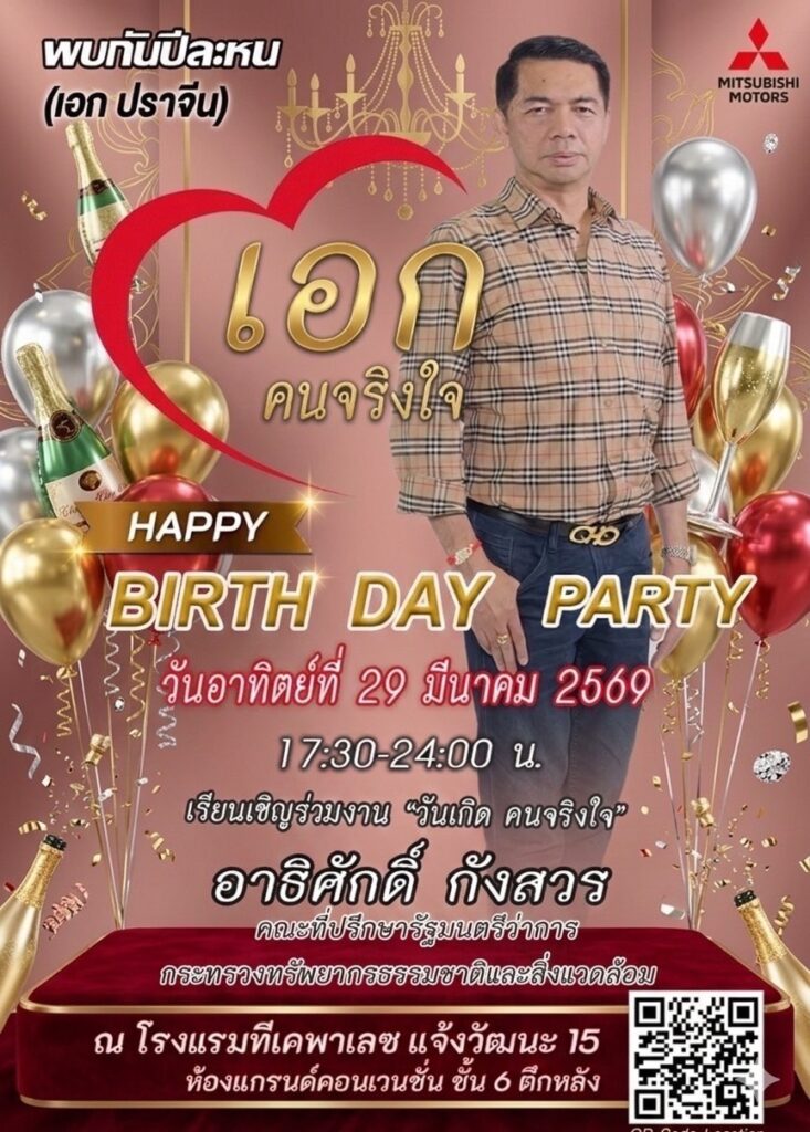 ค่ำวันที่ 29 มี.ค.69 ที่ ห้องแกรนด์คอนเวนชั่น โรงแรมทีเค พาเลซ แจ้งวัฒนะ 15 บรรยากาศงานเลี้ยงฉลองวันเกิดครบรอบ 60 ปี ของ คุณอาธิศักดิ์ กังสวร หรือ “สจ.เอก ปราจีน” (คณะที่ปรึกษารัฐมนตรีว่าการกระทรวงทรัพยากรธรรมชาติและสิ่งแวดล้อม) เป็นไปอย่างยิ่งใหญ่ อบอวลไปด้วยความสุข