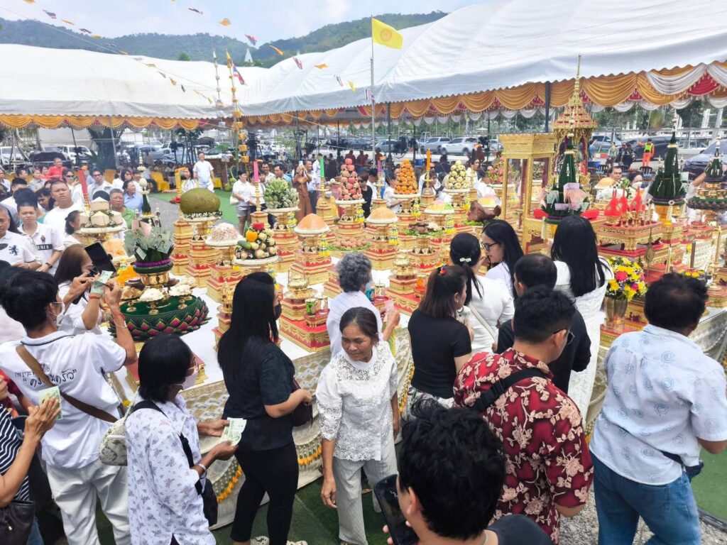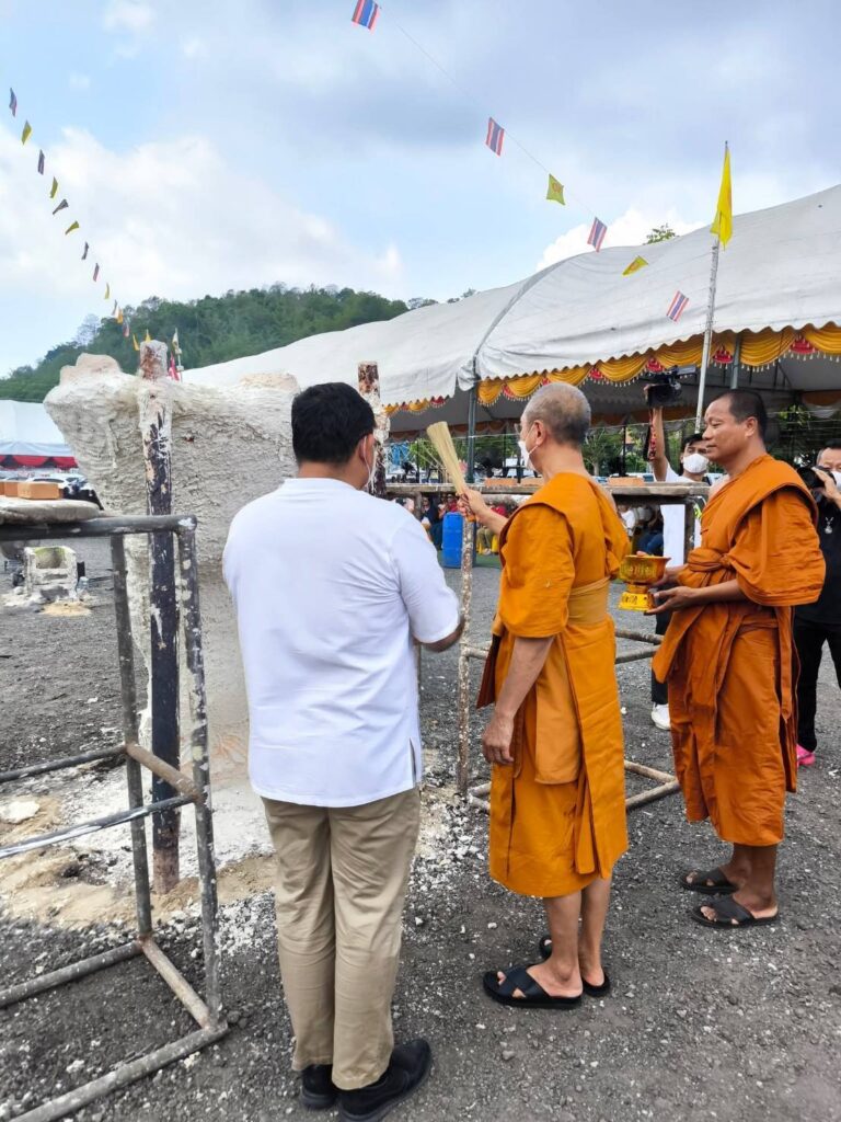 ในครั้งนี้นั้นจะนำไปประดิษฐาน ไว้ที่ศาลากลางน้ำวัดเขาช่องลมและที่วัดพันเสด็จนอก คณะกรรมการได้นิมนต์พระเถระมานั่งปรกอธิษฐานจิตในครั้งนี้ เพื่อถวายไว้ในพระพุทธศาสนาสืบต่อไป ขอให้พุทธศาสนิกชนผู้มีจิตศรัทธาทั้งหลายที่ร่วมบริจาคจตุปัจจัยเพื่อให้การสร้สงพระพุทธรูปกลวงพ่อโตวัดบางพลีได้สำเร็จลุล่วงไปด้วยดีในครั้งนี้ ขออำนาจคุณพระศรีรัตนตรัยบุญกุศลที่ท่านได้บำเพ็ญ จงเป็นผลพลวงปัจจัยโปรดอำนวยพรให้ท่าน พร้อมทั้งครอบครัว จงประสบสิริสวัสดิ์พัฒนานุภาพ ประกอบด้วย ลาลาภ ยศ สุข สรรเสริญ และเจริญด้วย จตุรพิธพรชัยทั้งสี่ประการ อายุ วรรณะ สุขะ พละปฏิภาณ ธนสารสมบัติ ในที่ทุกสถานนานเทอญรวมถึงในครั้งนี้ทางพระครูภาวนาวชิราลังกานได้มอบเงินสนับสนุนในงานประเพณีกองข้าวศรีราชาจำนวน100,000บาท โดยมีนางภัทรชนันท์ ผ่องผาด นายอำเภอศรีราชาเป็นผู้รับมอบในครั้งนี้