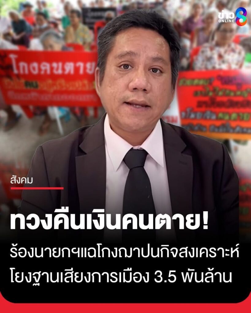 เครือข่าย 8 จังหวัดทวงคืนเงินคนตาย ผนึกกำลัง “ทนายรณณรงค์” เตรียมบุกทำเนียบรัฐบาลพรุ่งนี้ 31 มี.ค.69 จี้ “นายกหนู” ทลายขบวนการกินส่วยฌาปนกิจ แฉโมเดลแชร์ลูกโซ่ฝังราก 30 ปี เสียหายยับ 3,500 ล้านบาท พบพิรุธโยงใย “หัวคะแนน” นักการเมืองระดับประเทศ ทำสำนวนคดีล่องหน