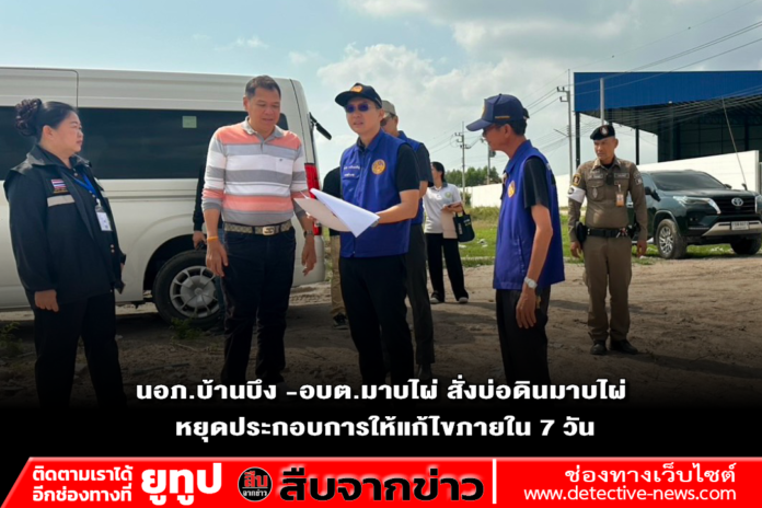 เมื่อเวลา 09.30 วันที่ 30 มีนาคม 2569 ว่าที่ร้อยตรี นายศราวุธ กรจิระเจริญ นายนายอำเภอบ้านบึง -กองช่างอบต.มาบไผ่-ตร.สภ.บ้านบึง ลงพื้นที่ตรวจสอบบ่อขายดินไม่ทราบชื่อ ในพื้นที่ ซอยแพรวา รีสอร์ท แยกเกาะไม้แหลม ต.มาบไผ่ อ.บ้านบึง จ.ชลบุรี ภายหลังจากประชาชน ผู้ใช้รถใช้รถถนน ที่พักอาศัยอยู่ใกล้พื้นที่ดังกล่าว ได้การมีเรื่องร้องเรียน ความเดือดร้อนผ่าน ส.ส.ชลบุรี เนื่องจากมีรถบรรทุกจำนวนมาก ได้วิ่งมาซื้อดิน วิ่งเข้า-ออก บ่อดินตลอดทั้งวัน โดยรถบรรทุกที่วิ่งเข้าออกไม่มีการคุมผ้าใบ ทำให้เกิดปัญหาเศษดินตกหล่นบนถนนสาธารณะตลอดเส้นทางที่วิ่งผ่าน เกิดฝุ่นละออง pm2.5 ทั้งพื้นที่บ่อดินอยู่ติดถนนสาธารณะ และการขุดดินในบ่อดิน ซึ่งมีพื้นที่ประมาณ 30 ถึง 50 ไร่ มีระยะความลึกหลายเมตร เกรงจะเกิดอันตรายเนื่องจากอยู่ใกล้ถนนสาธารณะ