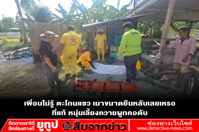 เพื่อนบ้านตะโกนแซวหนุ่มเลี้ยงควาย “เมาขนาดไหน ถึงขนาดยืนหลับได้” ขณะกำลังเดินเข้าไปทักทาย พอเข้าไปใกล้เห็นเชือกผูกคอห้อยโตงเตง ตกใจสุดขีด รีบวิ่งไปบอกญาติให้แจ้งเจ้าหน้าที่ พ่อผู้เสียชีวิตเผย เพิ่งกินข้าวเที่ยงด้วยกัน ก่อนออกไปทำงานได้แป๊บเดียว ก่อนเพื่อนบ้านโทรแจ้ง คาดโรคซึมเศร้า
