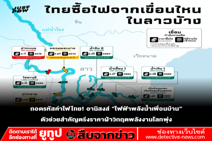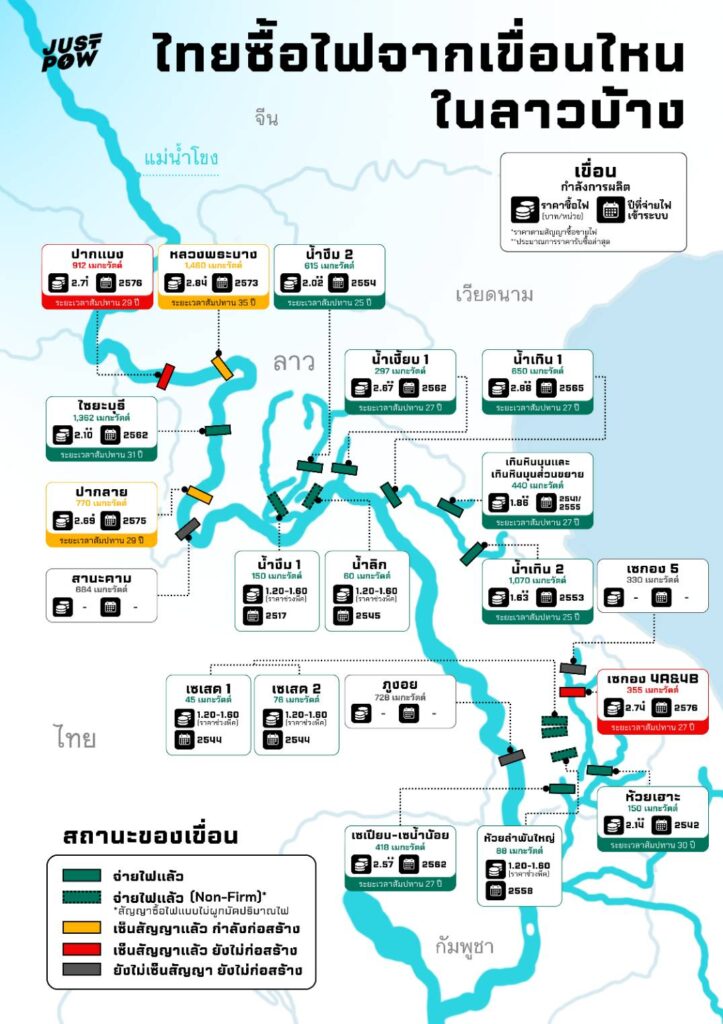- เขื่อนปากลาย (จ่ายไฟปี 2576): ราคาประมาณ 2.69 บาทต่อหน่วย