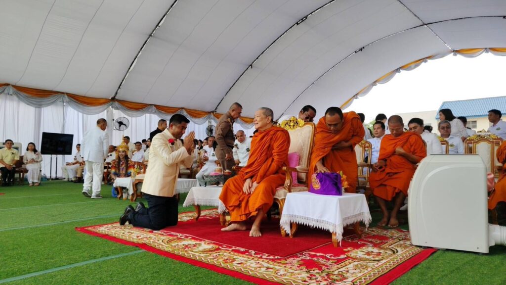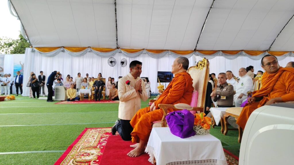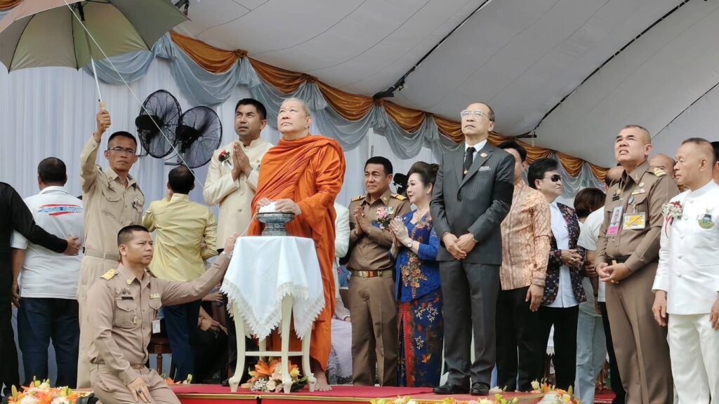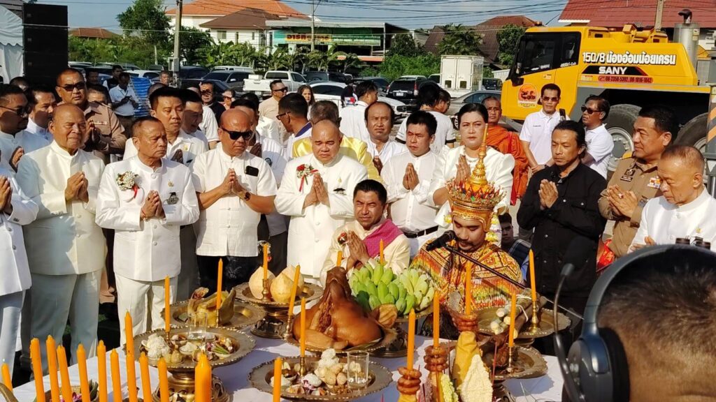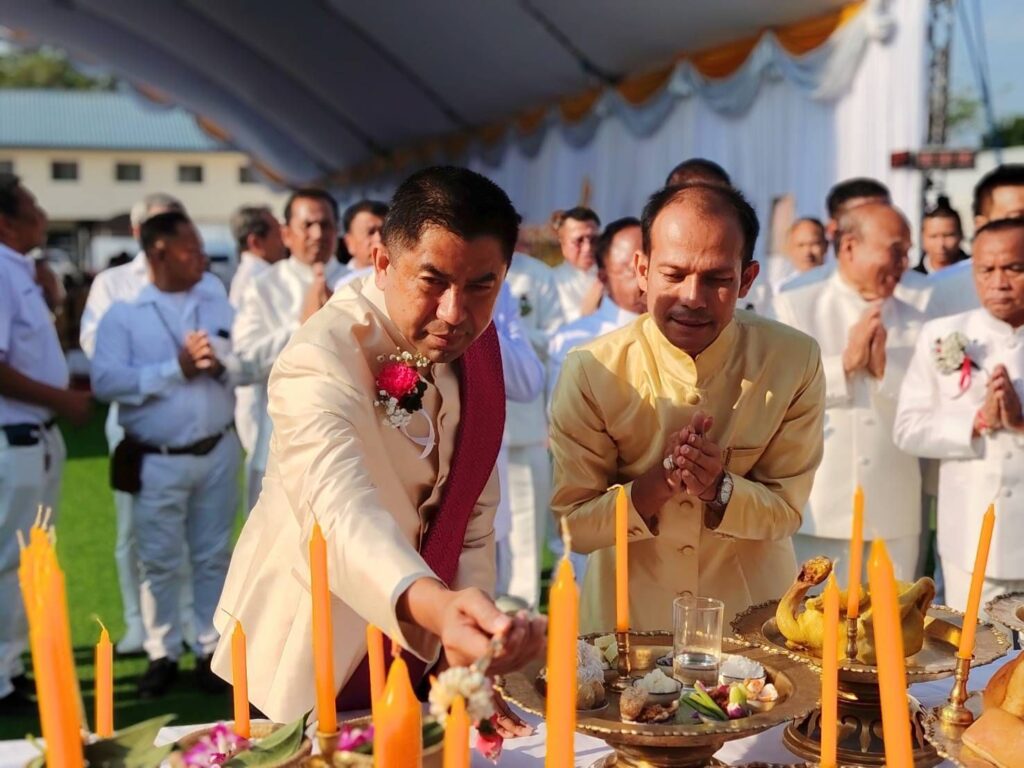 ในพิธีอันศักดิ์สิทธิ์นี้ สมเด็จพระมหารัชมงคลมุนี (ธงชัย ธัมมธโช) เจ้าคณะใหญ่หนกลาง กรรมการมหาเถรสมาคม และผู้ช่วยเจ้าอาวาสวัดไตรมิตรวิทยารามวรวิหาร เป็นประธานฝ่ายสงฆ์ พร้อมด้วย พล.ต.อ.สุรเชษฐ์ หักพาล นายกสมาคมชาวปักษ์ใต้ ในพระบรมราชูปถัมภ์ เป็นประธานฝ่ายฆราวาส และได้รับพระกรุณาจาก พลเอก พระวรวงศ์เธอ พระองค์เจ้าเฉลิมศึกยุคล เสด็จเข้าร่วมพิธีท่ามกลางความปลาบปลื้มของคณะกรรมการและพี่น้องชาวใต้ที่มาร่วมงานอย่างคับคั่ง