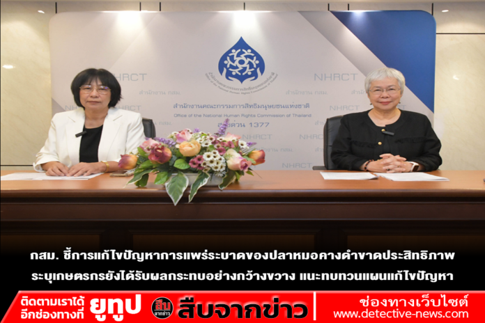 นางสาวศยามล ไกยูรวงศ์ กรรมการสิทธิมนุษยชนแห่งชาติ เปิดเผยว่า คณะกรรมการสิทธิมนุษยชนแห่งชาติ (กสม.) ได้รับเรื่องร้องเรียนจากเครือข่ายประชาชนที่ได้รับผลกระทบจากปลาหมอคางดำ 19 จังหวัด เมื่อเดือนมกราคม 2568 ระบุว่า ตามที่บริษัทเอกชนได้ขออนุญาตกรมประมง (ผู้ถูกร้อง) นำปลาหมอคางดำเข้ามาเพาะเลี้ยงที่จังหวัดสมุทรสาครเมื่อปี 2553 ต่อมาปี 2567 เกิดการแพร่ระบาดในพื้นที่ 19 จังหวัด ส่งผลกระทบต่อระบบนิเวศและการประกอบอาชีพของเกษตรกรอย่างร้ายแรง คณะรัฐมนตรี (ครม.) จึงมีมติเห็นชอบแผนปฏิบัติการแก้ไขปัญหาการแพร่ระบาดของปลาหมอคางดำ พ.ศ. 2567-2570 พร้อมอนุมัติกรอบวงเงินงบประมาณ 450 ล้านบาท ซึ่งประกอบด้วยมาตรการต่าง ๆ เช่น การรับซื้อปลาหมอคางดำ การปล่อยปลาผู้ล่า เป็นต้น แต่การปฏิบัติตามแผนปฏิบัติการแก้ไขปัญหาการแพร่ระบาดฯ ของผู้ถูกร้องไม่มีประสิทธิภาพ ไม่สามารถแก้ไขปัญหาได้อย่างแท้จริง นอกจากนี้ ผู้ถูกร้องและหน่วยงานที่เกี่ยวข้องไม่ได้รวบรวมข้อเท็จจริงที่ชัดเจนเพื่อหาผู้กระทำความผิดหรือผู้ที่ต้องรับผิดชอบต่อการแพร่ระบาดของปลาหมอคางดำ และเรียกค่าเสียหายที่เกิดขึ้นต่อระบบนิเวศและประชาชน รวมถึงค่าใช้จ่ายที่รัฐใช้ไปในการแก้ไขปัญหาตามหลักผู้ก่อมลพิษเป็นผู้จ่าย จึงขอให้ตรวจสอบ