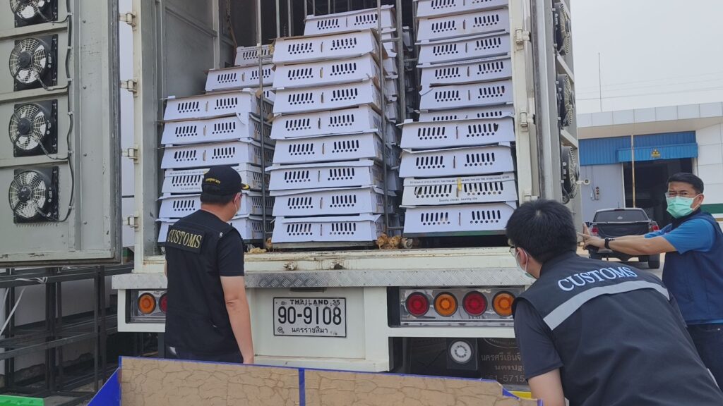 จากการตรวจค้นพบลูกไก่มีชีวิตจำนวนมาก ถูกบรรจุอยู่ภายในกล่องที่มีข้อความภาษาเวียดนามกำกับอย่างชัดเจน สร้างข้อสงสัยว่าเป็นสินค้านำเข้าที่ไม่ได้ผ่านการตรวจสอบอย่างถูกต้องตามกฎหมาย