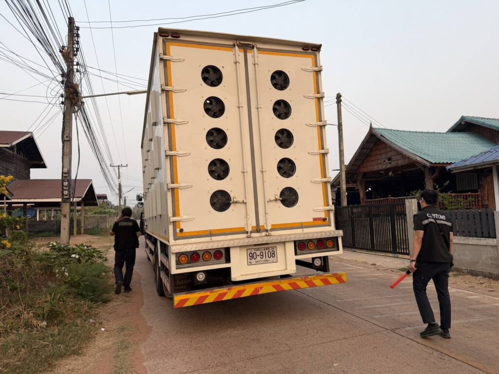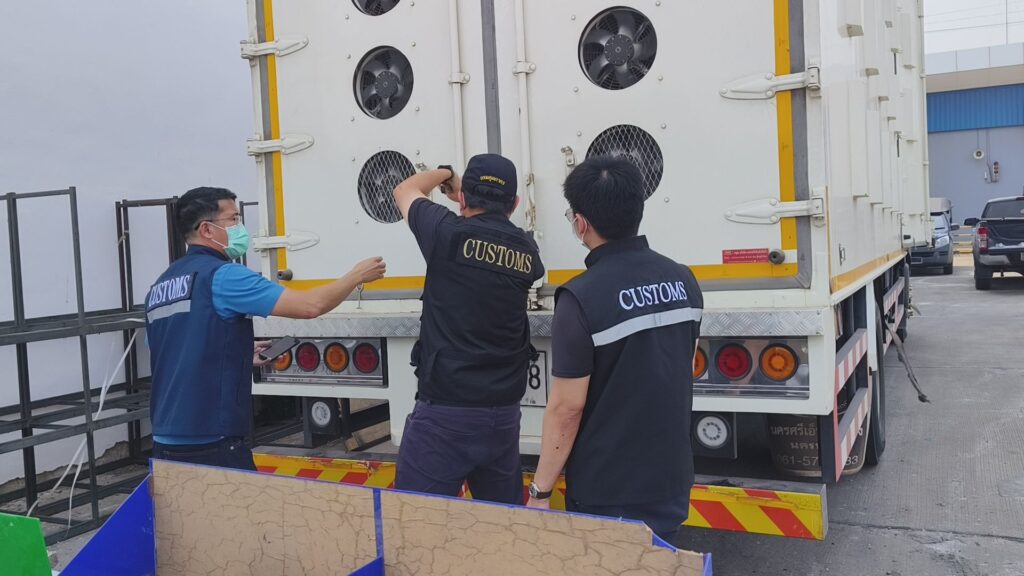 เจ้าหน้าที่ด่านศุลกากรมุกดาหาร สนธิกำลังร่วมกับฝ่ายสืบสวนและปราบปราม ส่วนควบคุมทางศุลกากร สำนักงานศุลกากรภาคที่ 2, ฝ่ายสืบสวนและปราบปราม 2 ส่วนสืบสวนและปราบปราม 1 กองสืบสวนและปราบปราม กรมศุลกากร ด่านกักกันสัตว์มุกดาหาร และหน่วยงานความมั่นคงในพื้นที่ เข้าตรวจสอบรถบรรทุกสินค้าหมายเลขทะเบียน 90-9108 นครราชสีมา บริเวณตำบลนาอุดม อำเภอนิคมคำสร้อย จังหวัดมุกดาหาร หลังได้รับข้อมูลน่าสงสัยว่าอาจมีการลักลอบขนส่งสินค้าที่ไม่ผ่านพิธีการศุลกากร