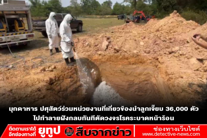 เมื่อวันที่ 4 เมษายน 2569 ปศุสัตว์ร่วมเจ้าหน้าที่ศุลกากร พร้อมหน่วยงานที่เกี่ยวข้อง ได้ร่วมกันนำลูกเจี๊ยบ 36,000 ตัว ของกลางมาที่ด่านกักกันสัตว์ระหว่างประเทศขุดหลุมฝังกลบทำลายปล้องกันเกิดโรคระบาดมากับฤดูร้อน