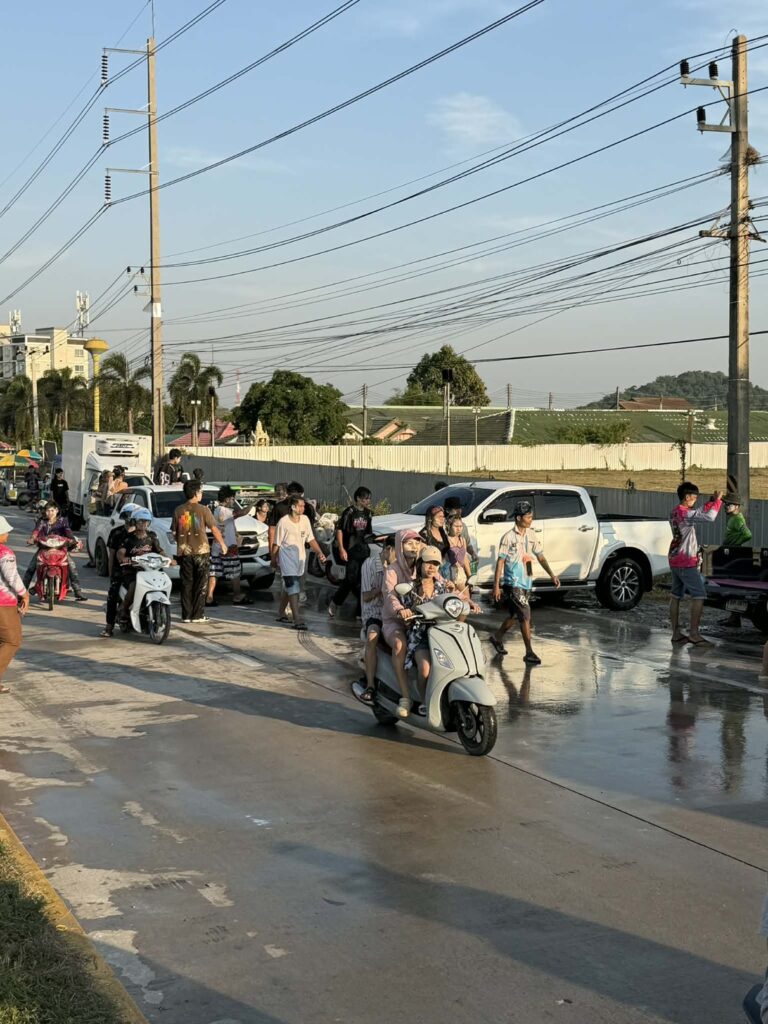 เมื่อเวลา 17.30 น. วันที่ 5 เมษายน 2569 บรรยากาศในพื้นที่ตำบลบ่อวิน อำเภอศรีราชา จังหวัดชลบุรี บริเวณถนนสายหนองก้างปลา–ห้วยปราบ และถนนสายอิสเทิร์นซีบอร์ด ทั้งขาเข้าและขาออก หมู่ 7 พบว่ามีประชาชนจำนวนมากทยอยออกมาเล่นสาดน้ำกันอย่างคึกคัก แม้ในปีนี้ทางองค์การบริหารส่วนตำบลบ่อวินจะประกาศงดจัดงานวันไหลสงกรานต์อย่างเป็นทางการก็ตาม