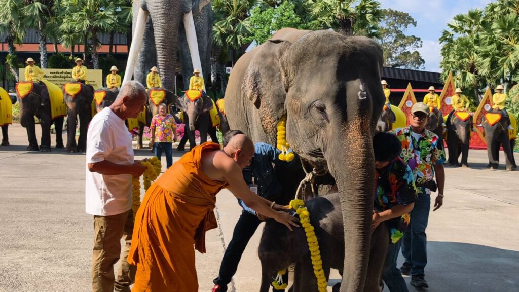 ในโอกาสเดียวกัน สวนนงนุชพัทยาได้จัดพิธีรับขวัญลูกช้างอย่างเรียบง่าย โดยมีพระครูเกษมกิตติโสภณ เจ้าคณะตำบลภูตาหลวง วัดสามัคคีบรรพต เป็นประธานประกอบพิธี ภายในพิธีมีขบวนนางรำและขบวนโขลงช้างกว่า 30 เชือก พร้อมพิธีคล้องพวงมาลัย ผูกสายสิญจน์ และเจิมหน้าผากแม่ช้างและลูกช้าง ตามประเพณีปฏิบัติของสวนนงนุช เพื่อความเป็นสิริมงคลแก่แม่ช้างและลูกช้าง