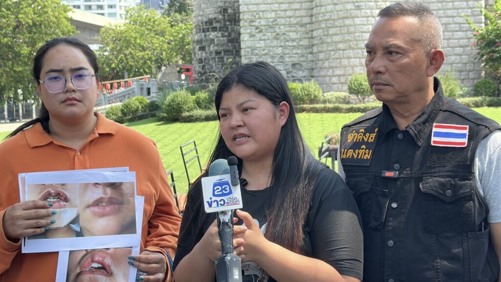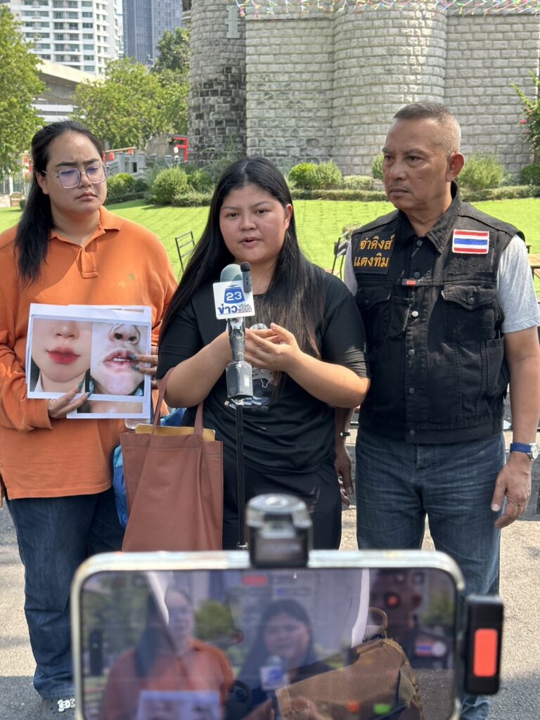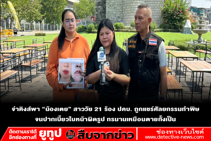 เมื่อเวลา 10.30 น. วันที่ 7 เม.ย. 69 ที่บริเวณหน้าแดนเนรมิตเก่า “จ่าคิงส์ แตงทิม สะพานใหม่” พา น.ส.เตย (นามสมมติ) อายุ 21 ปี ผู้เสียหายชาวจังหวัดนครสวรรค์ อาชีพขายของ อยู่ที่หาดใหญ่ เข้าร้องเรียนต่อสื่อมวลชน ก่อนแจ้งความพนักงานสอบสวน กองบังคับการปราบปรามการกระทำความผิดเกี่ยวกับการคุ้มครองผู้บริโภค (บก.ปคบ.) หลังเข้าร่วม “วงแชร์ศัลยกรรม” ของคลินิกชื่อดังแห่งหนึ่ง ย่านบางบัวทอง จ.นนทบุรี แต่ผลลัพธ์กลับทำให้ใบหน้าเสียโฉมอย่างรุนแรง