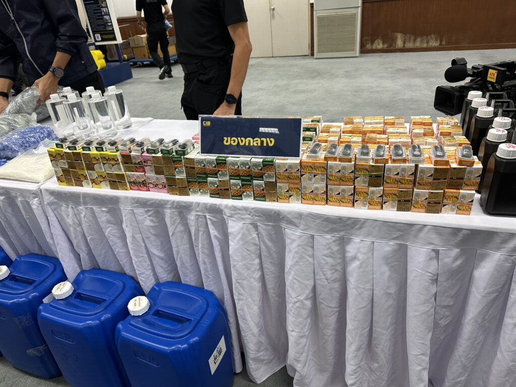 3.น้ำยาบุหรี่ไฟฟ้าและน้ำยาแต่งกลิ่น จำนวน 17 แกลลอน9.ยาเสพติดให้โทษประเภทที่ 1 (ยาไอซ์) 1.3 กรัม