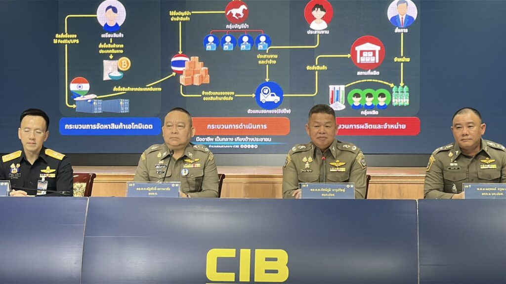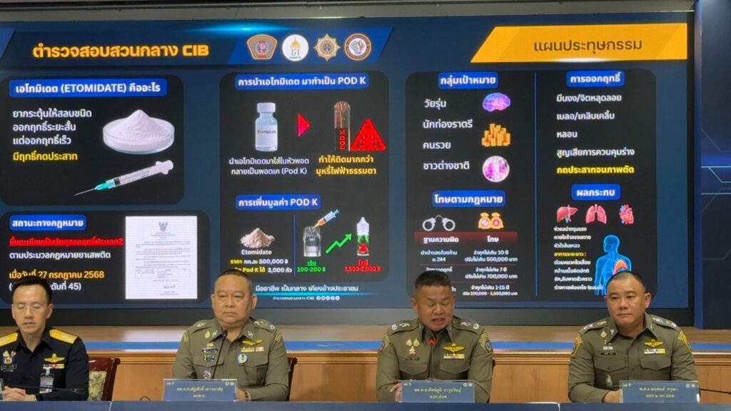 ต่อมาเจ้าหน้าที่ได้ดำเนินการสืบสวนขยายผลจนสามารถพิสูจน์ทราบแผนประทุษกรรม ของกลุ่มคนร้ายได้มีการแบ่งหน้าที่กันอย่างชัดเจนอันได้แก่ กระบวนการจัดหาสินค้าเอโทมิเดต จะมีตัวการหลักทำการติดต่อสั่งซื้อสารเอโทมิเดตโดยตรงจากประเทศอินเดีย และใช้บริการขนส่งระหว่างประเทศ นำสินค้าเข้ามายังประเทศไทย โดยอาศัยกลุ่ม “บัญชีม้า” เพื่ออำพรางตัวตนของตัวการที่แท้จริง ทั้งในกระบวนการนำเข้าและรับเงิน รวมถึงว่าจ้างตัวแทนออกของ (ชิปปิ้ง) เพื่อเคลื่อนย้ายสินค้าออกจากคลังสินค้าขาเข้าท่าอากาศยานสุวรรณภูมิ โดยปิดบังตัวตนของผู้นำเข้าที่แท้จริง ซึ่งพัสดุจะถูกจัดส่งไปยังจ.อุดรธานี เพื่อกระจายต่อไปยัง จ.หนองคาย แล้วนำไปจำหน่ายข้ามสู่ประเทศลาวต่อไป และอีกส่วนหนึ่งจะถูกจัดส่งตรงไปยังกรุงเทพมหานคร โดยมีทีมสนับสนุนในการจัดเตรียมสารเคมีตั้งต้นเพื่อใช้สำหรับผลิต บุหรี่ไฟฟ้า เพื่อเข้าสู่กระบวนการผลิตเป็นพอตเค จากนั้นได้ดำเนินการจำหน่ายตามแหล่งท่องเที่ยว และสถานบันเทิงในกรุงเทพมหานคร โดยมุ่งเป้าไปที่กลุ่มวัยรุ่น นักท่องราตรี ผู้มีฐานะ และชาวต่างชาติ ต่อไป