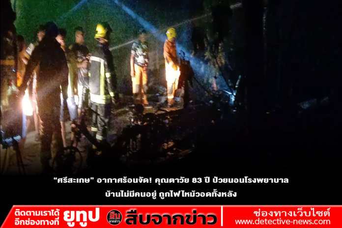 ขณะเดียวกัน นายทองสวย สายแก้ว กำนันตำบลเมือง กล่าวว่า ขณะเกิดเหตุไม่มีใครอยู่ในบ้าน เนื่องจากเจ้าของบ้านไปรักษาตัวอยู่ที่ รพ.กันทรลักษ์ และมีลูกหลานไปเฝ้าดูแล ส่วนความเสียหายเบื้องต้น พบบ้านถูกไฟเผาวอดทั้งหลัง รถจักยานยนต์ 2 คัน ตู้เย็น เครื่องครัวไหม้ เสื้อผ้า หมอนมุ้งถูกไฟเผาไหม้เสียหายทั้งหมด ประกอบกับช่วงระยะนี้ในพื้นที่อากาศค่อนข้างร้อนจัด ทำให้ไฟลุกลามอย่างรวดเร็ว ซึ่งขณะไฟกำลังลุกไหม้ เพื่อนบ้านที่อยู่ติดกัน ได้รีบวิ่งไปเอาสะพานไฟลงก่อนเพื่อความปลอดภัย ซึ่งคาดว่าสาเหตุน่าจะมาจากไฟฟ้ารัดวงจร