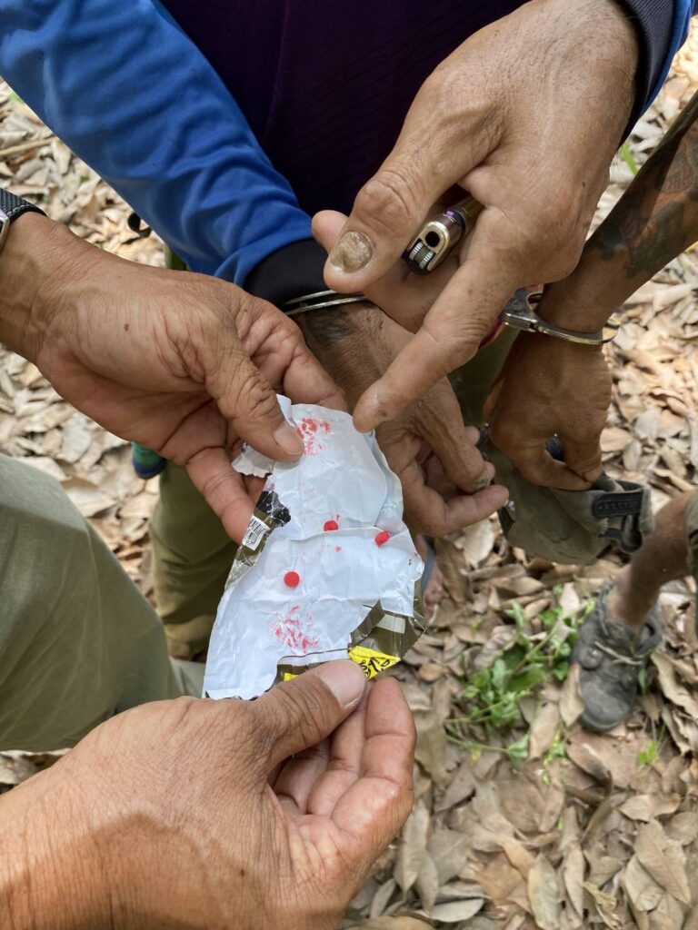 รายที่ 1 นายเด่นชัย: ตกเป็นผู้ต้องหาฐานมียาเสพติดไว้ในครอบครองเพื่อจำหน่ายและเสพ พร้อมข้อหาหนักครอบครองอาวุธปืนและเครื่องกระสุนโดยไม่ได้รับอนุญาต ตรวจยึดของกลางเป็นยาบ้า 79 เม็ด, ยาไอซ์ 4.0 กรัม, อาวุธปืนยาว 1 กระบอก พร้อมกระสุนปืนลูกซองเบอร์ 12 และกระสุนขนาด .22 อีกเกือบ 30 นัด