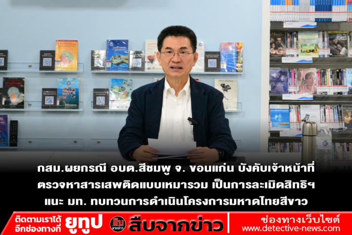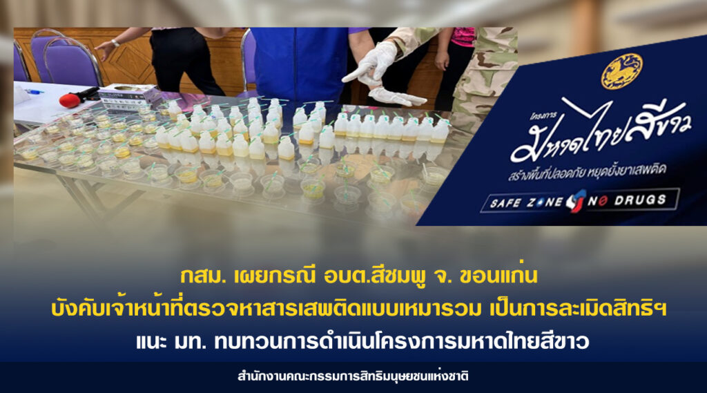 – เผยกรณี อบต.สีชมพู จ. ขอนแก่น บังคับเจ้าหน้าที่ตรวจหาสารเสพติดแบบเหมารวม เป็นการละเมิดสิทธิฯ แนะ มท. ทบทวนการดำเนินโครงการมหาดไทยสีขาว