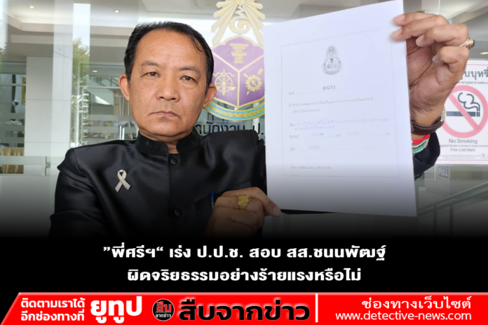 วันที่ 10 เม.ย.69 ที่สำนักงาน ป.ป.ช.นนทบุรี นายศรีสุวรรณ จรรยา ผู้นำองค์กรรักชาติ รักแผ่นดิน ได้เดินทางมายื่นพยานหลักฐานเพิ่มเติมต่อคณะกรรมการ ป.ป.ช. เพื่อขอให้ไต่สวนและวินิจฉัยชี้มูลความผิด สส.ชนนพัฒฐ์ นาคสั้ว ซึ่งถูก ปปง. มีมติให้อายัดทรัพย์สินไว้ตรวจสอบหลังถูกกล่าวหาว่าร่วมกันจัดให้มีการเล่นการพนันออนไลน์ ทำเว็บไซต์การพนันออนไลน์และฟอกเงินตามสำนวนคดีของ สภ.เมืองสงขลา และ สภ.หาดใหญ่ กระทั่ง DSI ได้ยื่นฟ้องต่อศาลแล้ว และล่าสุดอัยการสูงสุด มีคำสั่งชี้ขาดให้ฟ้องคดีแล้ว จึงมีน้ำหนักเพียงพอที่ ป.ป.ช.จะดำเนินการชี้มูลความผิดว่า สส.คนดังกล่าวเข้าข่ายฝ่าฝืนมาตรฐานทางจริยธรรมอย่างร้ายแรงหรือไม่