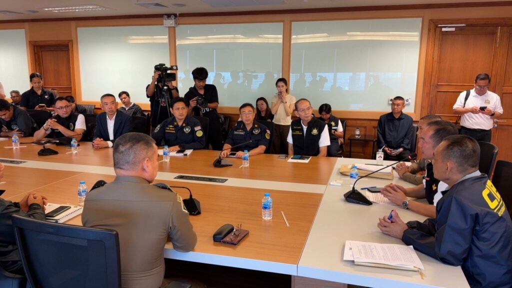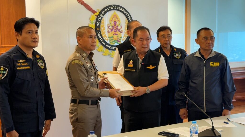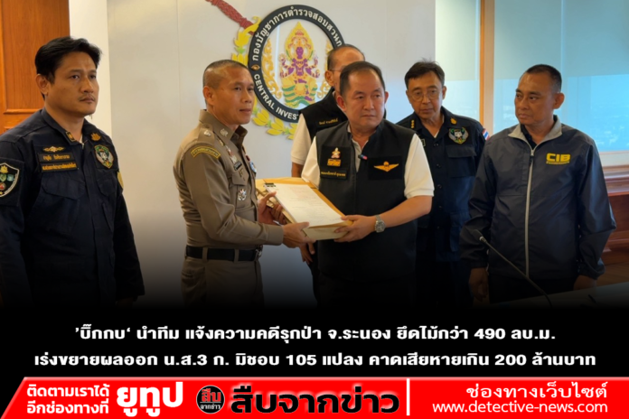 เมื่อเวลา 14.00 น. วันที่ 10 เม.ย. ที่ ห้องประชุม ชั้น 28 อาคารพิทักษ์สันติ กองบัญชาการสอบสวนกลาง กระทรวงทรัพยากรธรรมชาติและสิ่งแวดล้อม (ทส.) นำโดย พล.ต.ต.นันทชาติ ศุภมงคล (บิ๊กกบ) ที่ปรึกษารัฐมนตรีว่าการกระทรวงทรัพยากรธรรมชาติและสิ่งแวดล้อม พร้อมด้วย นายชาญชัย กิจศักดาภาพ หัวหน้าชุดพยัคฆ์ไพร เข้าพบ พล.ต.ต.สุวัฒน์ แสงนุ่ม รองผู้บัญชาการตำรวจสอบสวนกลาง พล.ต.ต.จรูญเกียรติ ปานแก้ว รองผู้บัญชาการตำรวจสอบสวนกลาง และ พล.ต.ต.เอนก เตาสุภาพ ผบก.ปทส. เพื่อนำเอกสารหลักฐานและแจ้งความดำเนินคดี กรณีตรวจยึดไม้ท่อนจำนวนประมาณ 450 – 500 ท่อน ปริมาตรรวมราว 490 ลูกบาศก์เมตร ในพื้นที่ป่าเขาปากเตรียม – อ่าวจาก จังหวัดระนอง พร้อมขยายผลการออกเอกสารสิทธิ น.ส.3 ก. โดยมิชอบ จำนวน 105 ฉบับ