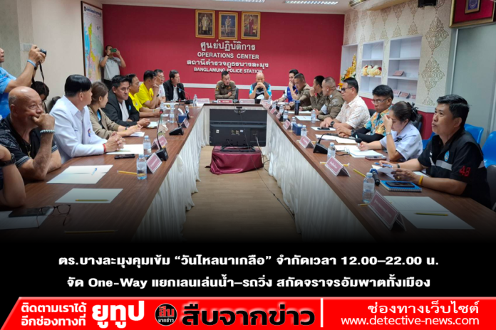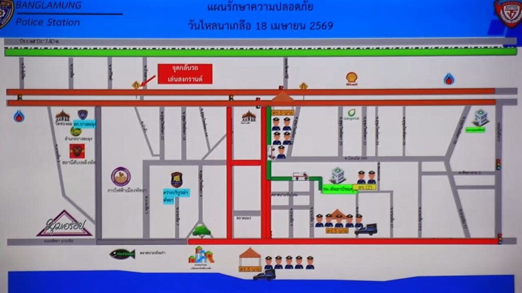ในที่ประชุมได้กำหนดแนวทางดูแลความปลอดภัย การจัดการจราจร และการอำนวยความสะดวกให้กับประชาชนและนักท่องเที่ยว ครอบคลุมพื้นที่ถนนนาเกลือ และถนนสายหลักสุขุมวิท โดยจะเปิดให้เล่นน้ำเฉพาะช่วงเวลา 12.00–22.00 น. เท่านั้น พร้อมระดมกำลังเจ้าหน้าที่รวม 120 นาย ดูแลความเรียบร้อยอย่างเข้มงวด