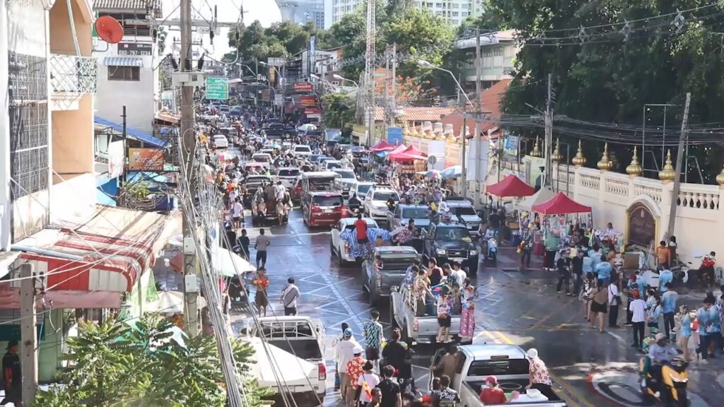 ด้าน พ.ต.ท. จักรกฤษณ์ จำตาคำ สารวัตรจราจร สภ.บางละมุง เปิดเผยว่า ได้วางมาตรการจราจรเข้มงวดเพื่อป้องกันปัญหาการจราจรติดขัด และยกระดับความปลอดภัยในช่วงเทศกาล โดยกำหนดให้ถนนสว่างฟ้าเป็นเส้นทางเดินรถทางเดียว (One-Way) ตั้งแต่แยกสว่างฟ้าถึงแยกนำชัย ระหว่างเวลา 12.00–22.00 น. พร้อมห้ามรถขนาดใหญ่ทุกชนิด เช่น รถบรรทุกน้ำ และรถบรรทุกตั้งแต่ 6 ล้อขึ้นไป เข้าพื้นที่โดยเด็ดขาด