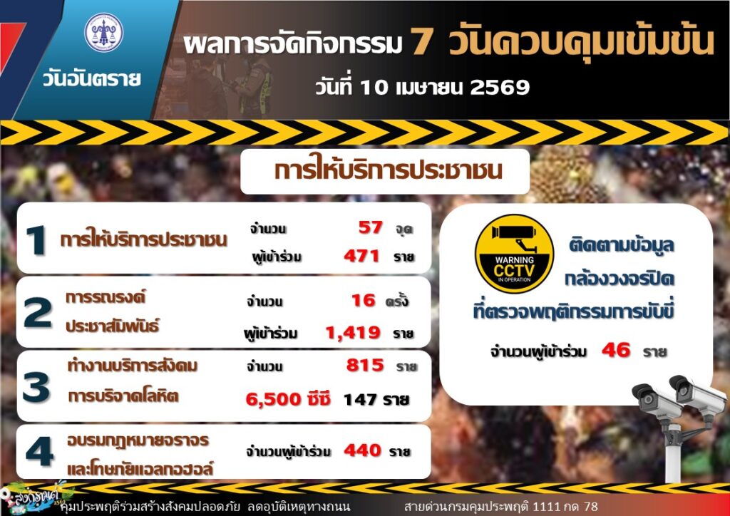 อธิบดีกรมคุมประพฤติ กล่าวว่า กรมคุมประพฤติ ได้วางมาตรการป้องกันและลดอุบัติเหตุทางถนน ช่วงเทศกาลสงกรานต์ 2569 ภายใต้แนวคิด “ขับขี่ปลอดภัย ลดความเร็ว ลดอุบัติเหตุ” “คุมประพฤติร่วมสร้างสังคมปลอดภัย ลดอุบัติภัยทางถนน” ผ่าน 4 มาตรการสำคัญ ได้แก่